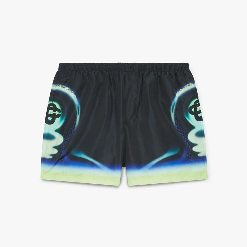 De svarte Sporchid-badeshortsene med trykk har et raffinert design laget av teknisk badestoff, med sesongens Sporchid-kunstverk. Utstyrt med elastisk linning, innvendig snøring, sidelommer i sømmen, fôr og kontrastdetaljer i kanten.