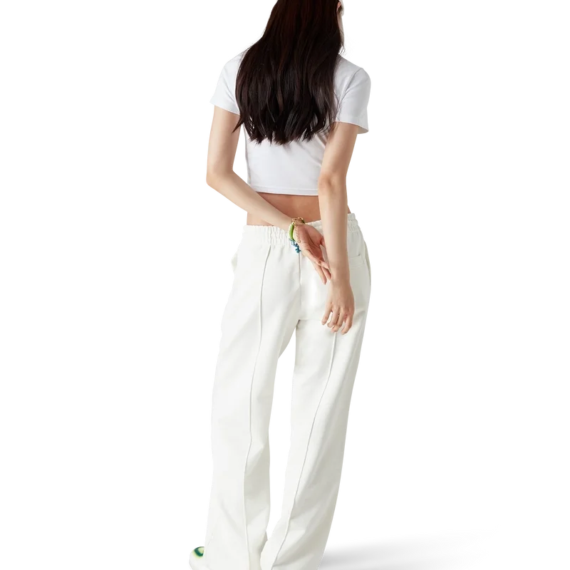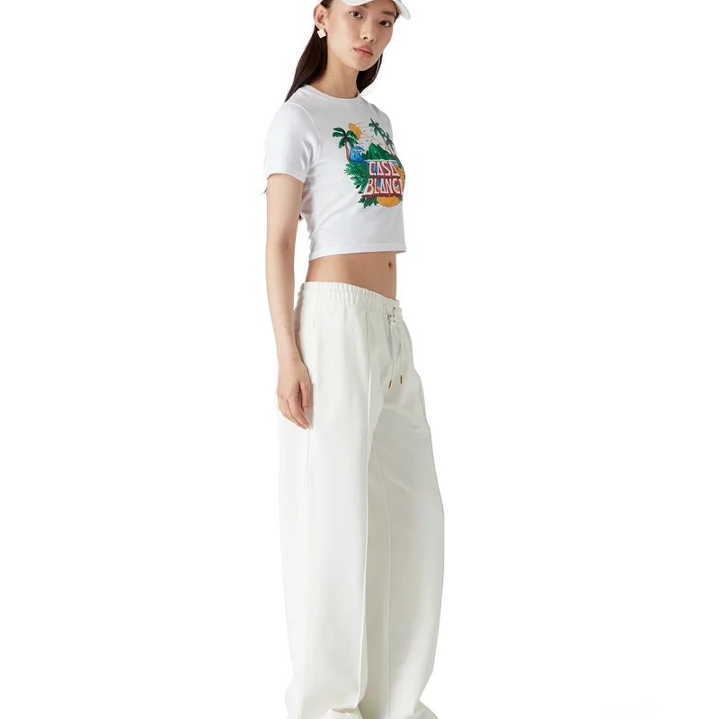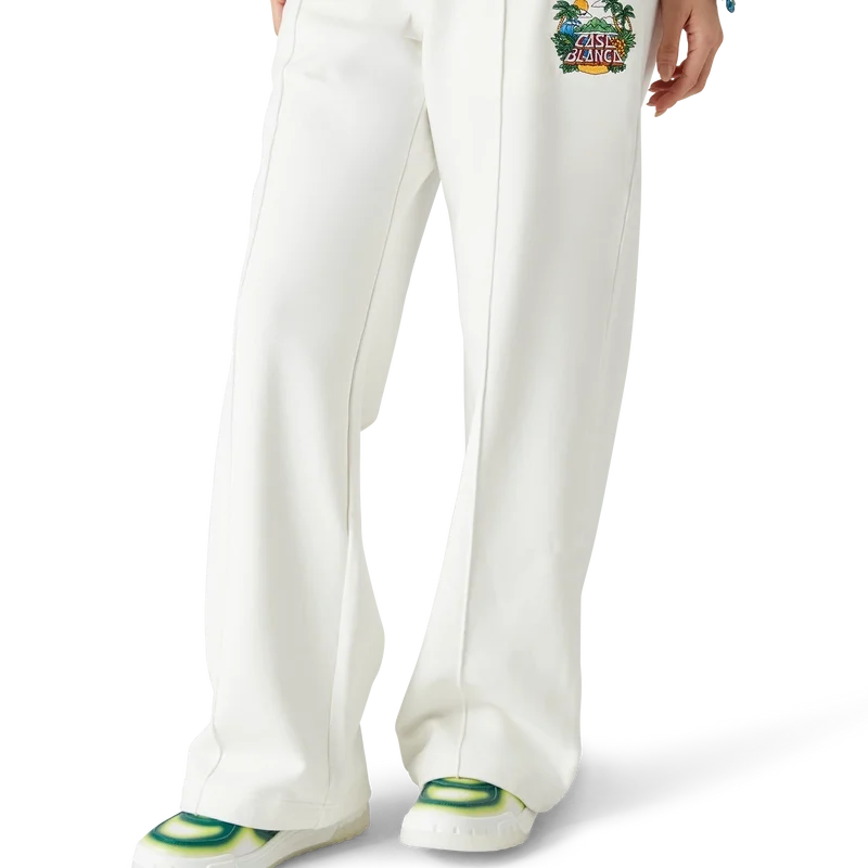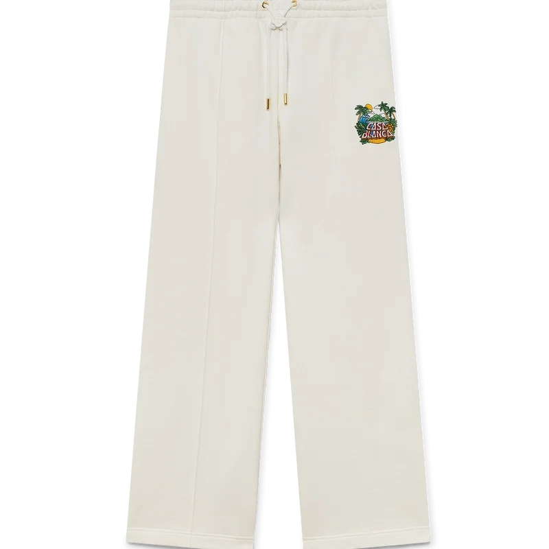 Casa Beach Wave joggebukse har et trykt design laget av økologisk bomullsstoff og har et karakteristisk motiv som refererer til en suvenir man ville kjøpt på en strandferie. Den har elastisk linning, snøring med gullspisser, lommer i sømmen og en påsydd lomme bak.