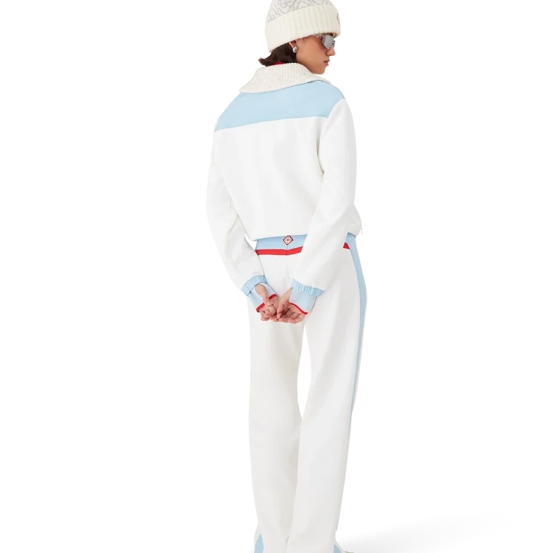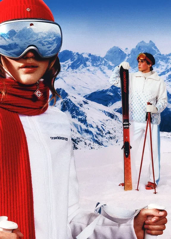 Skibuksene er et raffinert Apras-Sport-design laget av teknisk tørrstoff i hvitt, inspirert av den krystallklare renheten i Japans alpine landskap. Designet er hentet fra morgendisen over snødekte daler og frosne innsjøer som speiler de høye fjellene, og har en ytelsesorientert konstruksjon med polyesterfôr.