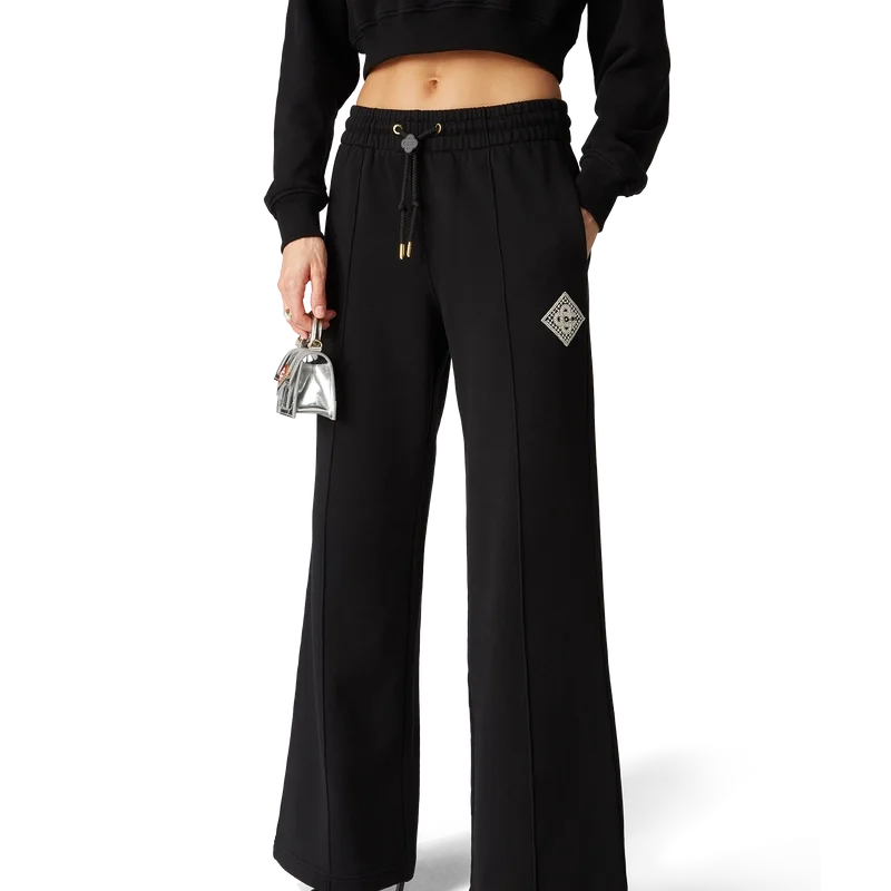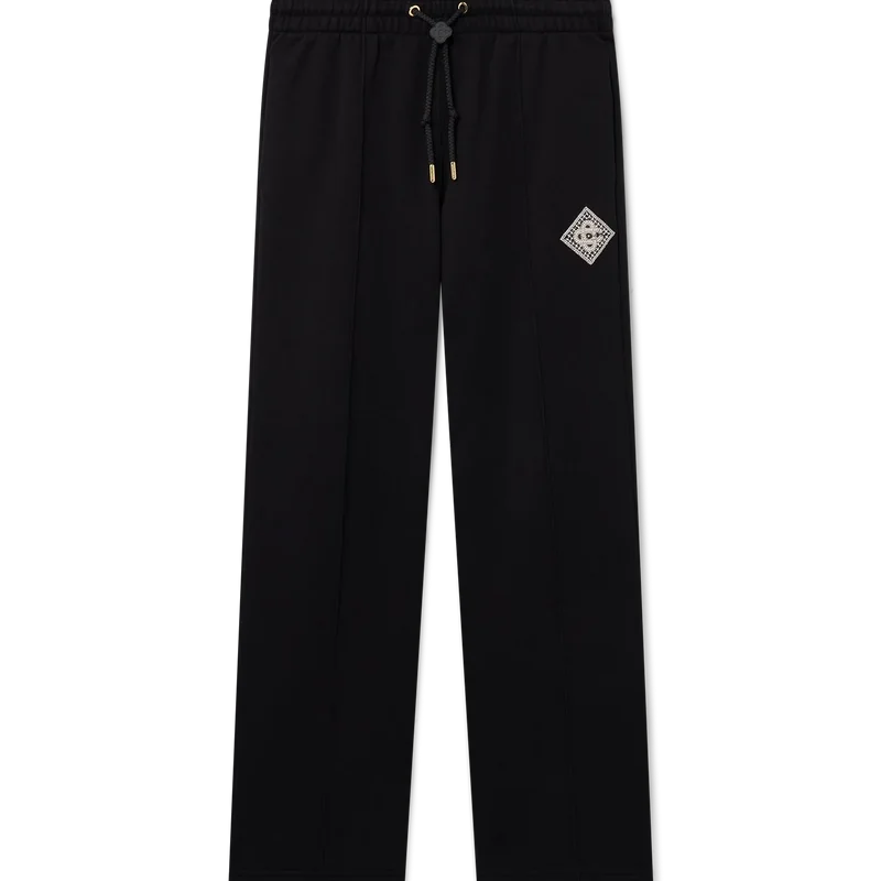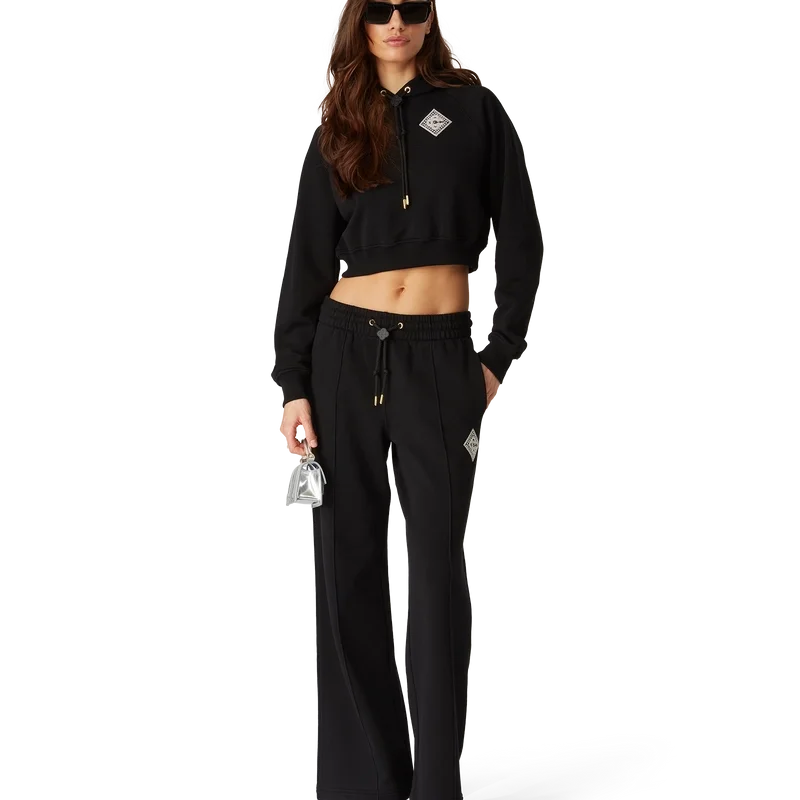 Pearl Diamond-joggebuksene er en sportsbuksemodell med rette ben, laget av økologisk bomull. Utstyrt med elastisk linning, gullbelagte ørepynt, snøring med gullspisser, sidelommer i sømmen, en påsydd baklomme og en påsydd perle- og krystaldiamant.<!–