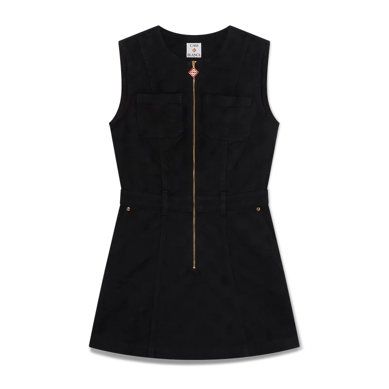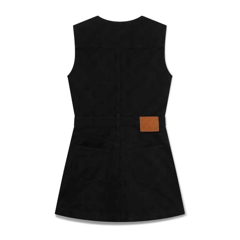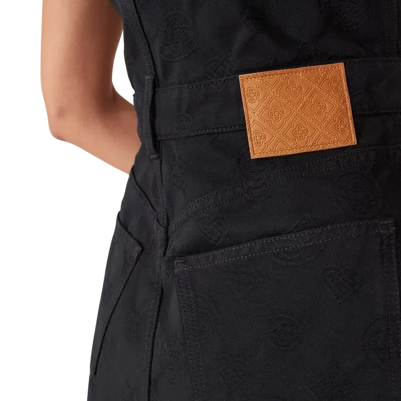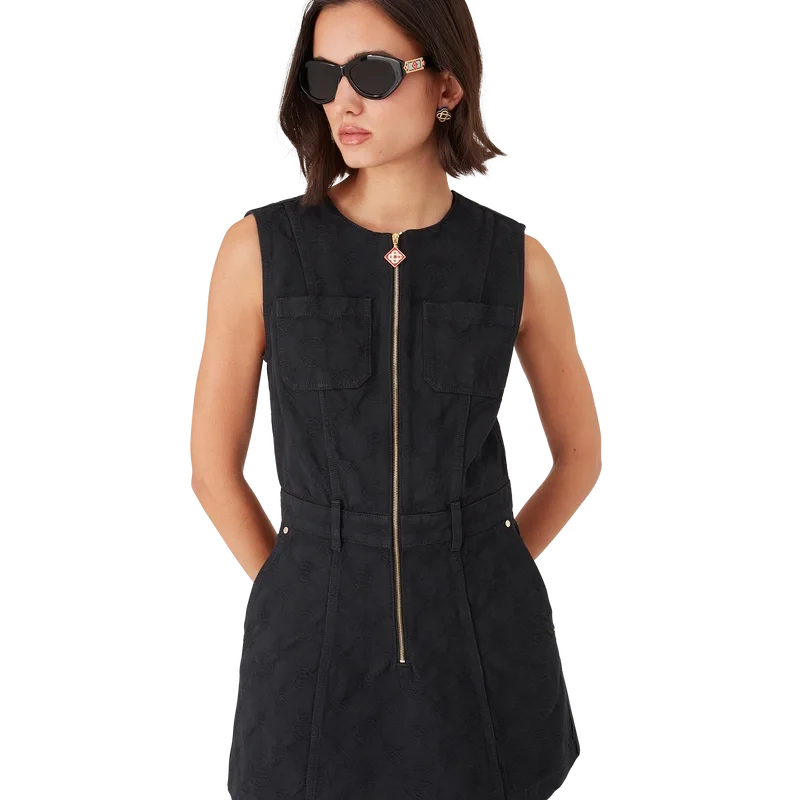 Denim Monogram Zip Kjole er en ermeløs minikjole i A-linjeform med sesongens Honeydew-logotrykk. Dette mønsteret skiller seg fra våre andre monogrammer, da det kombinerer unike former for å danne et helhetlig mønster. Det er mer et ikonbasert design.