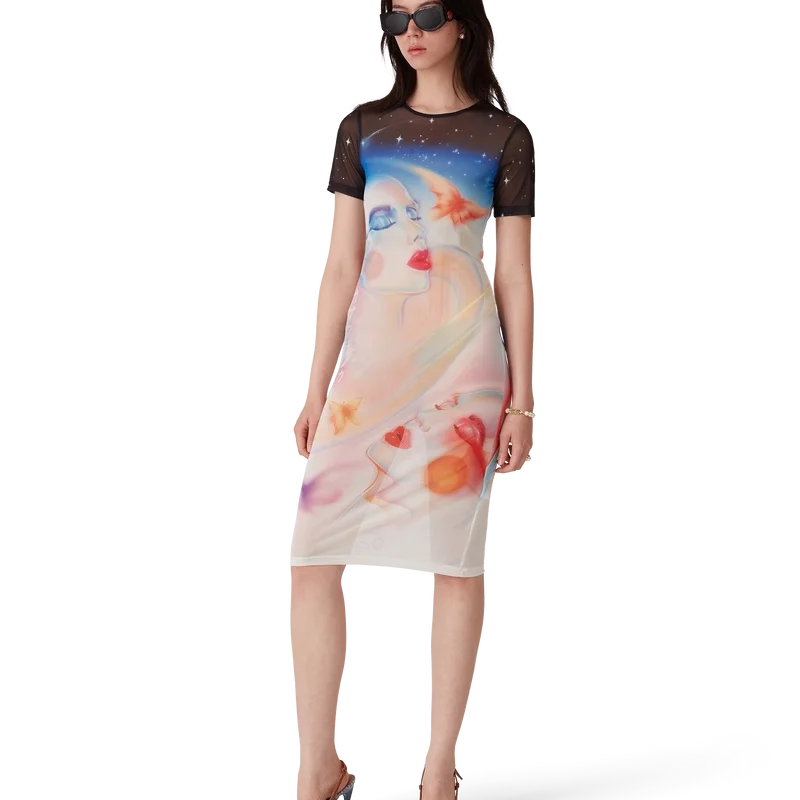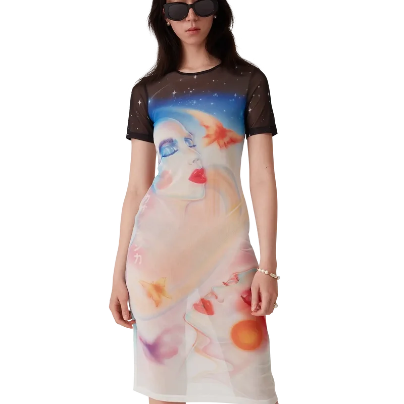 Galactic Connection kortærmet kjole i mesh