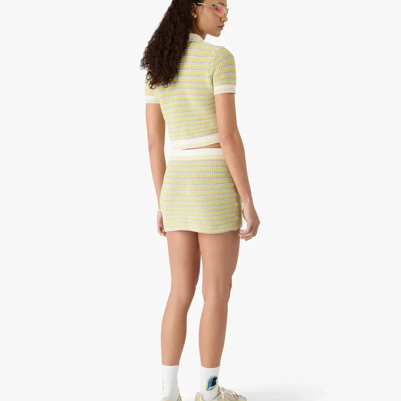 Bourgeois Striped Pique-skjorte er et raffinert strikket design med elegante horisontale striper. Den har knappestenging, kontrastfarget ribbestrikket krage, knappeliste, mansjetter og kantdetaljer, emaljerte knapper med sølvkant og husets forsølvede Warped-logo, samt en tettsittende passform som gjenspeiler husets sofistikerte tilnærming til strikkeplagg.
