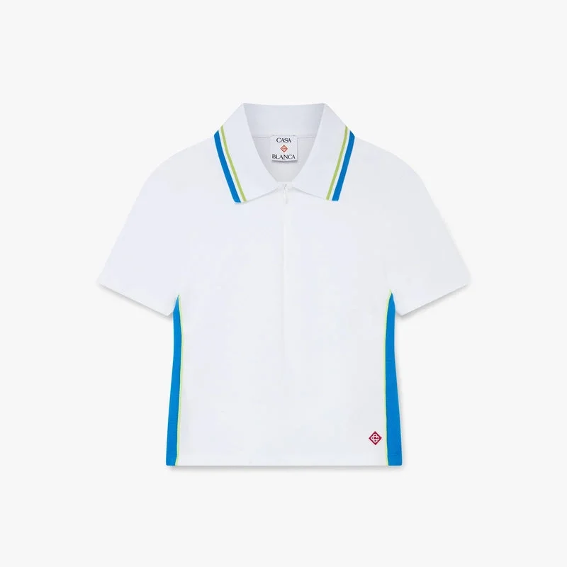 Hvit piké-polo-skjorte med utskjæringer