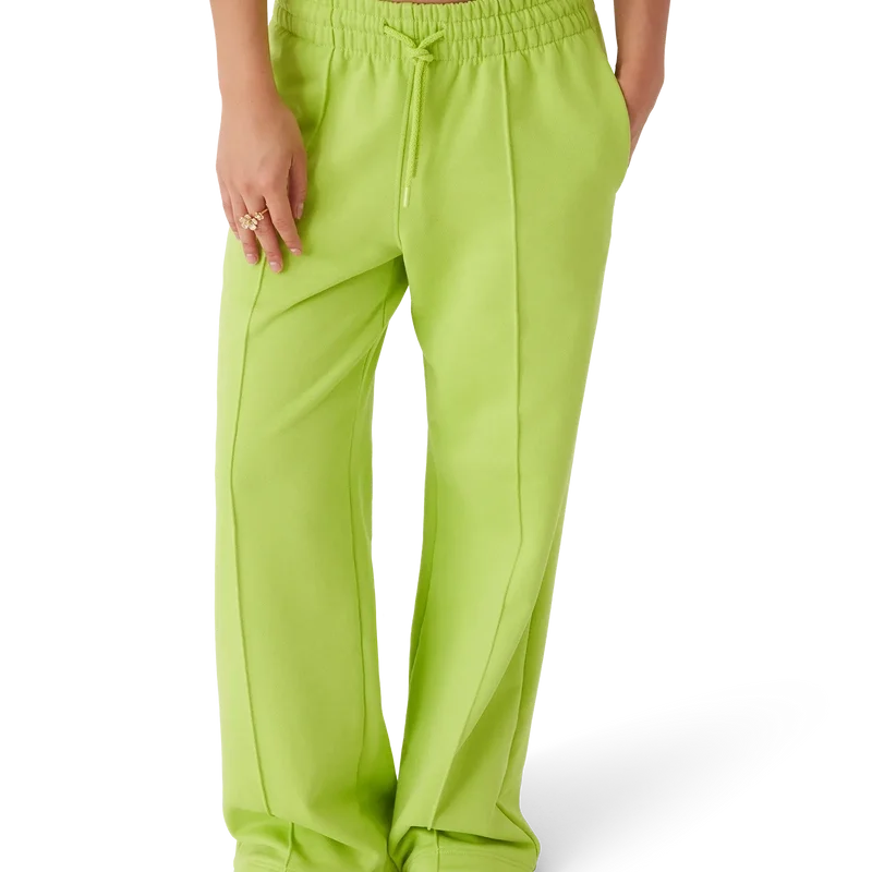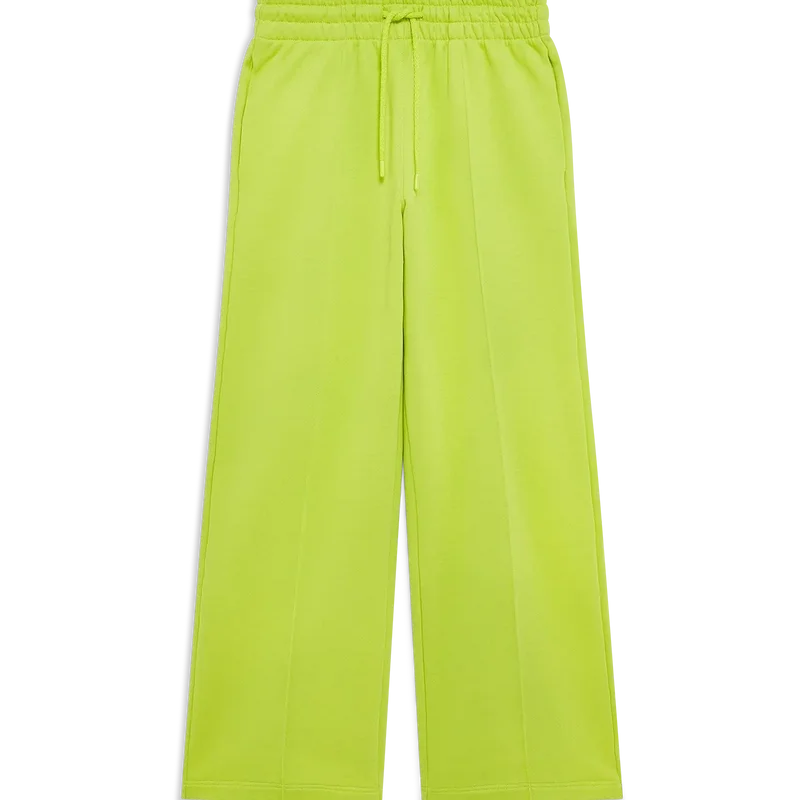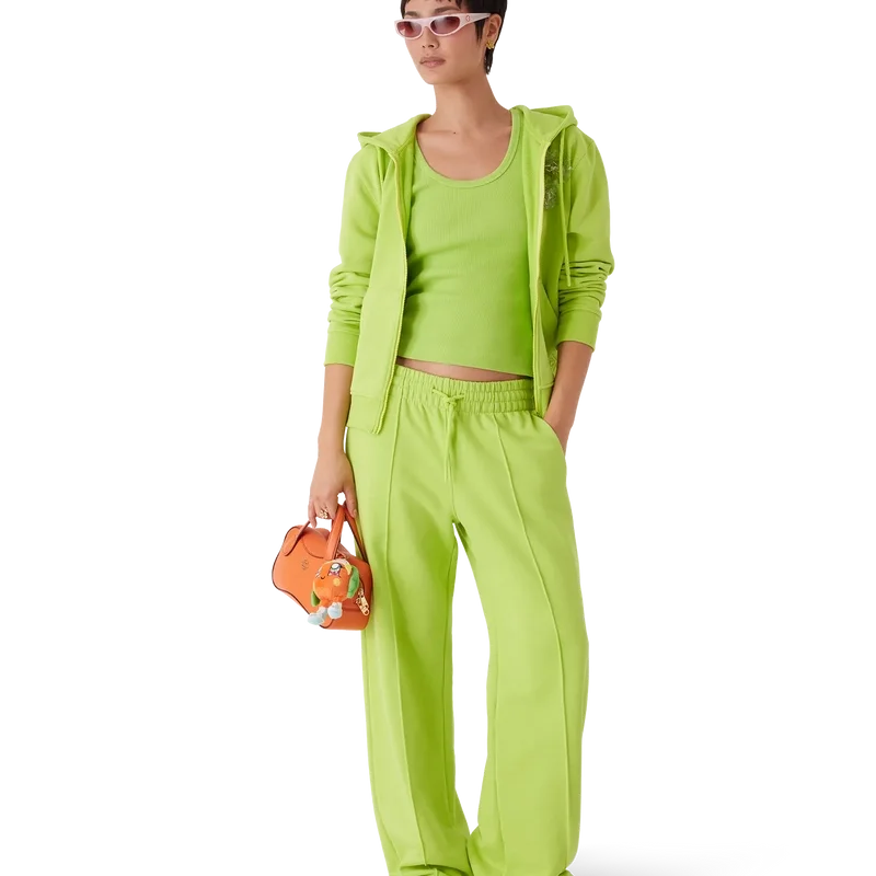 Joggebuksen med åpen kant er et sportsklærdesign laget av økologisk bomullsstoff i limegrønn farge med to avtakbare blomsterbrosjer. Fullført med elastisk linning, snøring, innstikkede sømmer foran, lommer i sømmen og en påsydd lomme bak med Diamond Monogram-broderi.