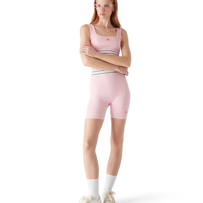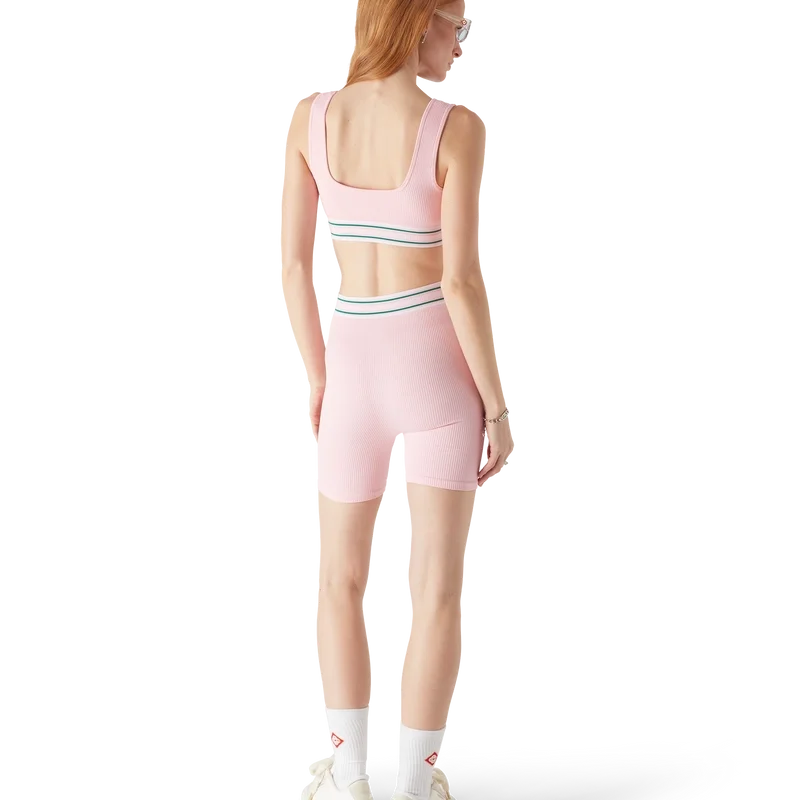 Casablanca-shortsen har et strømlinjeformet design inspirert av sportsklær, med husets karakteristiske diamantlogo-lapp. Laget av et sømløst stretchstoff som gir en raffinert silhuett med minimalistisk konstruksjon. Fullført med et flatterende snitt, en elastisk linning med husets Casablanca-logo og stripet detalj.