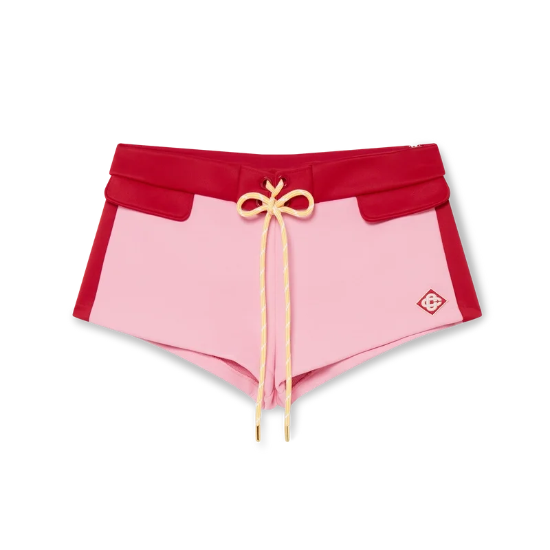 Tricot minishorts er en kort modell laget av trikotstoff. Utstyrt med linning, snøring, falske klafflommer og merket med husets karakteristiske diamantlogo.
