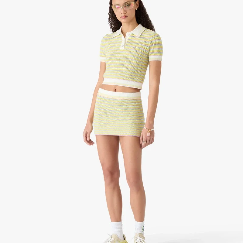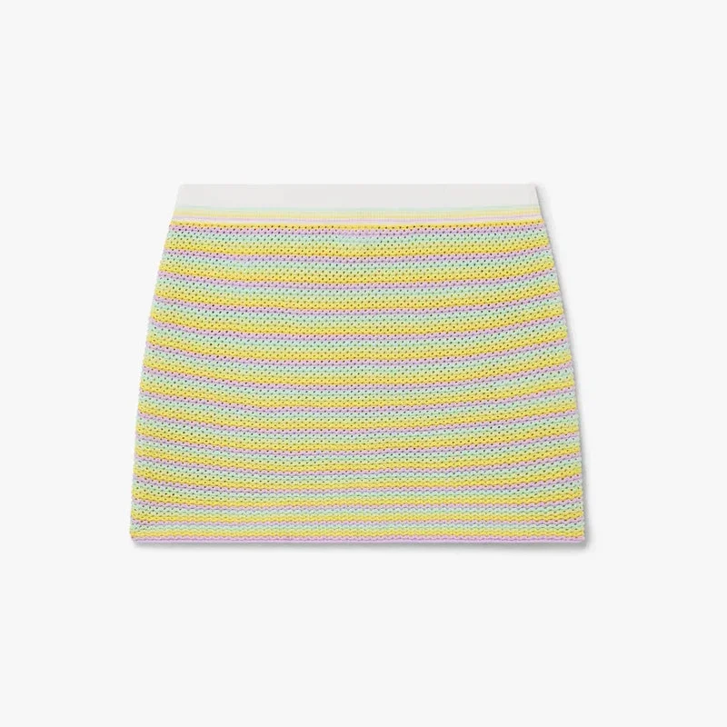 Bourgeois Striped Mini Skjørt er et raffinert A-linje-strikket design med husets Warped-logo. Fullført med elastisk linning med ribbedetaljer og elegante striper over hele skjørtet.
