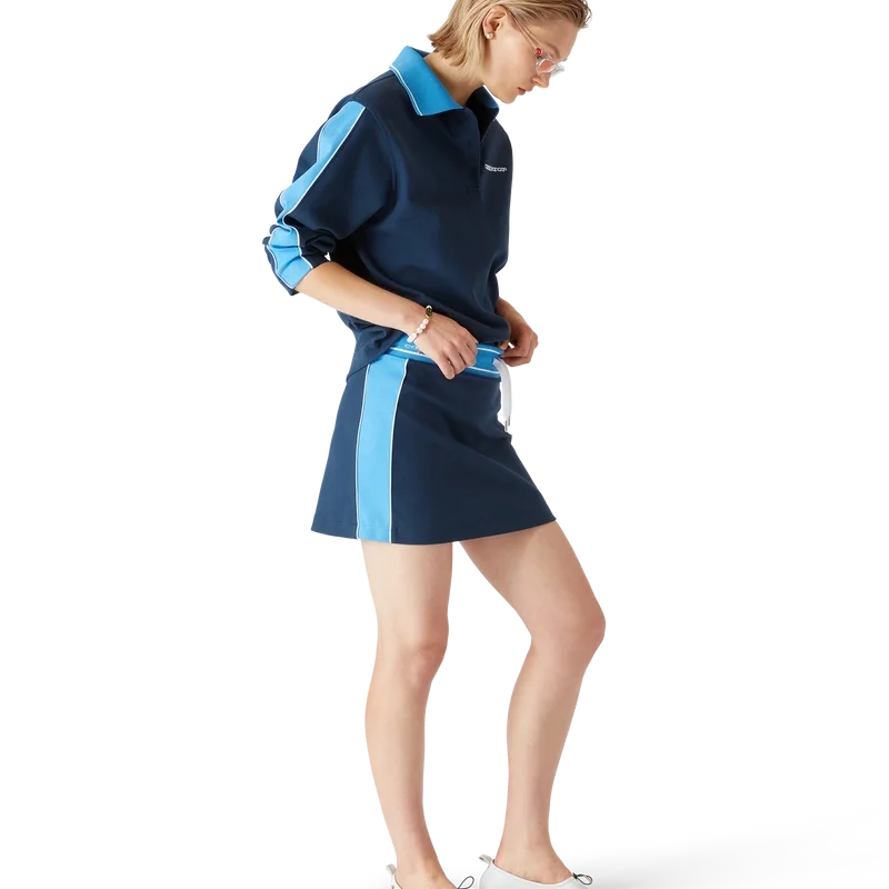 Punto miniskjørt har et raffinert design med Casablanca-logoen. Det har elastisk linning med stripete detaljer, snøring, stripete detaljer nedover sidene og en avslappet silhuett.