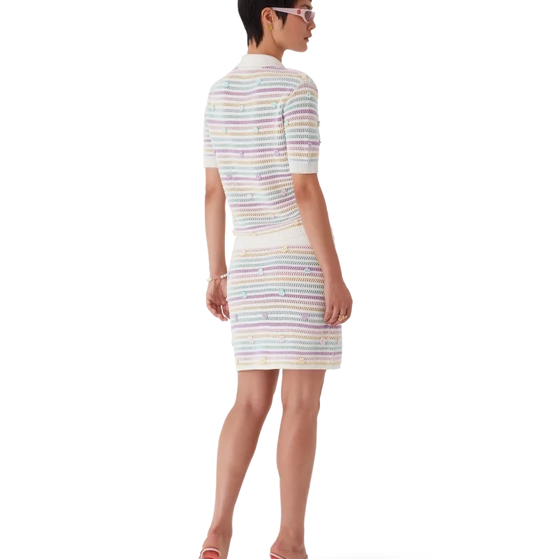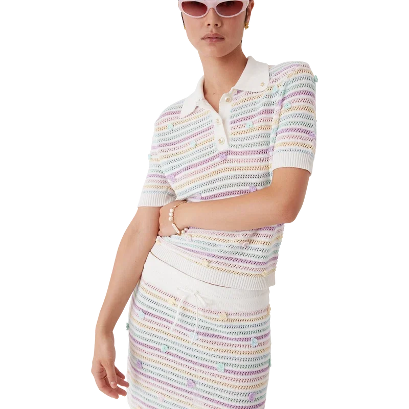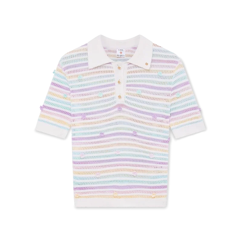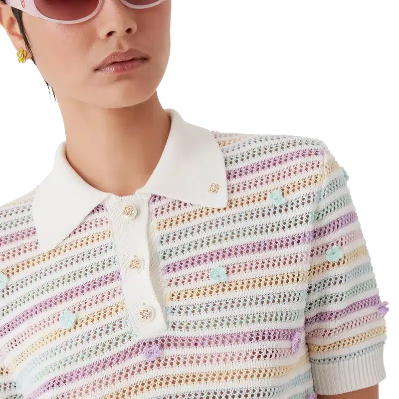 Pique-skjorter i bomullshakket med blomsterstriper er et klassisk design med korte ermer, laget av et bomullsstoff med åpen veving. Fullført med karakteristiske gullkantede perleknapper, blomstermotiver, ribbestrikket krage, mansjetter, knappeliste og detaljer i nederkant.