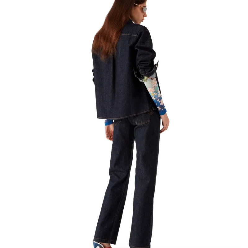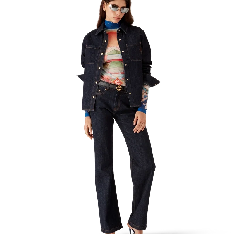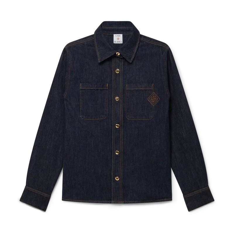 Raw Denim-skjorten er en langermet modell laget av bomullsdenim. Den har brystlommer, spiss krage, knappestenging, gullbelagte detaljer med merke, en bokspliss i ryggen og et brodert CC-logo. Beregnet på å brukes sammen med matchende denimjeans.