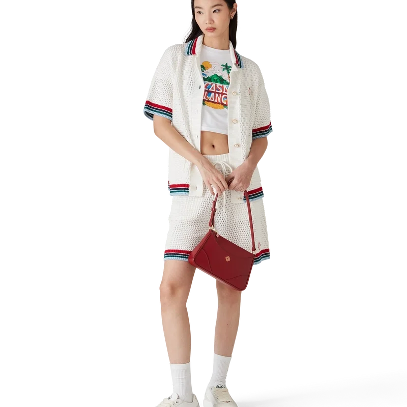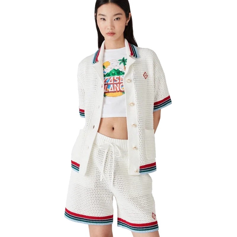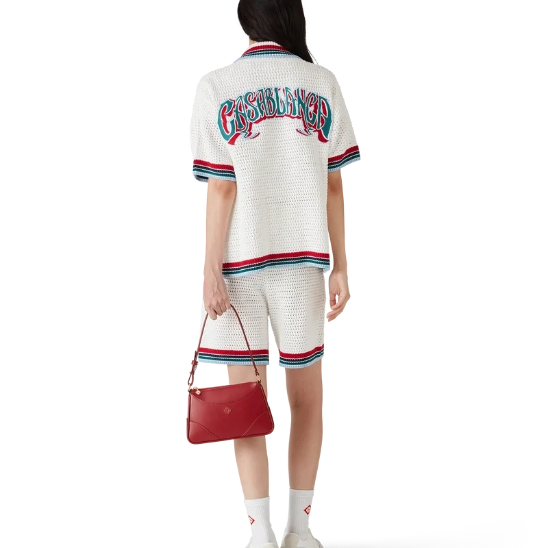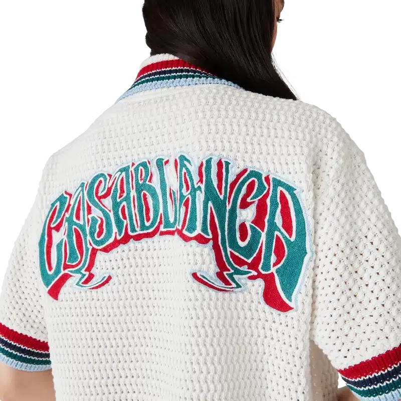 Den gotiske heklede skjorten er en kortærmet strikket modell laget av heklet bomullsstoff og har husets karakteristiske diamantlogo. Fullført med karakteristiske gullkantede perleknapper, påsydde lommer foran og stripete kantdetaljer på krage, mansjetter og nederkant.