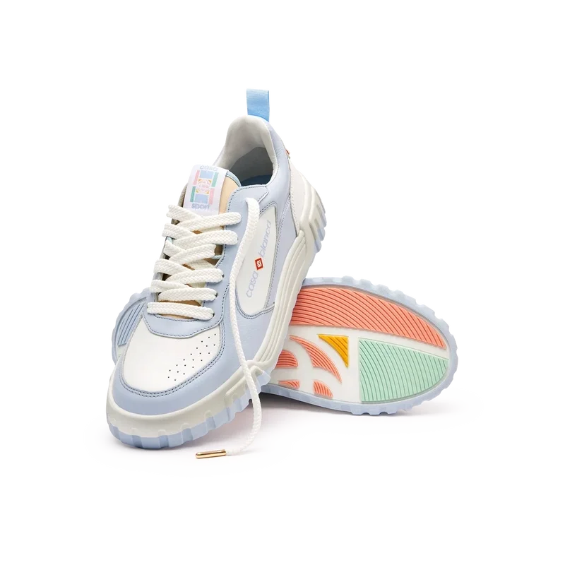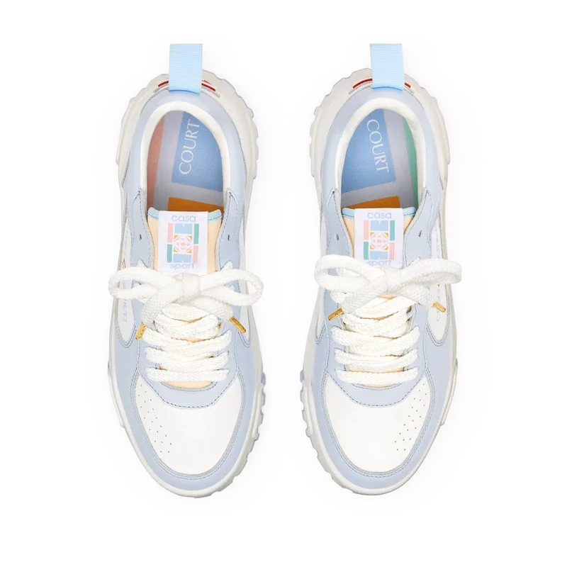 Designspråket til Court-sneakeren gjenspeiler de ikoniske silhuettene fra 90-tallet. Fargene på gummisålen er en kombinasjon av raffinerte elementer fra tennis og klassisk arkitektur, og skaper en helhetlig fargepalett på hele skoen, med fokus på primærfarger som kontrasteres av tennis-hvitt for å skape en sportslig fargehistorie.Overdelen av skoen har integrerte, flytende panellinjer som en hilsen til de ikoniske silhuettene fra 90-tallet. Det fremtredende Casablanca-merket er tydelig overalt, inkludert merkets signaturdiamantmotiv på hælen, silikonordmerke på sidene og det vevde tennissilhuettmotivet på tungeetiketten og innersålen, noe som gir opphav til navnet, Court.