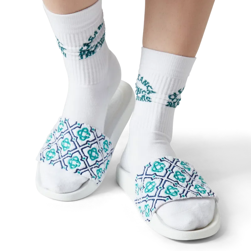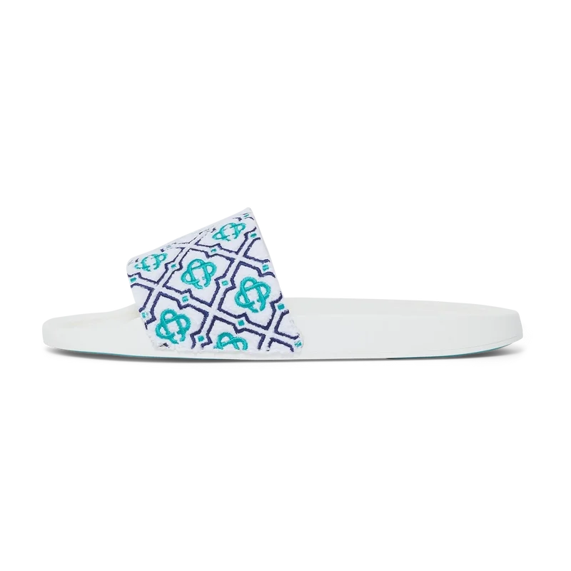 Monogram Towelling Sliders er laget av et Monogram-frottéstoff og har husets Diamond Monogram på overdelen. Fullført med polstrede gummisåler.