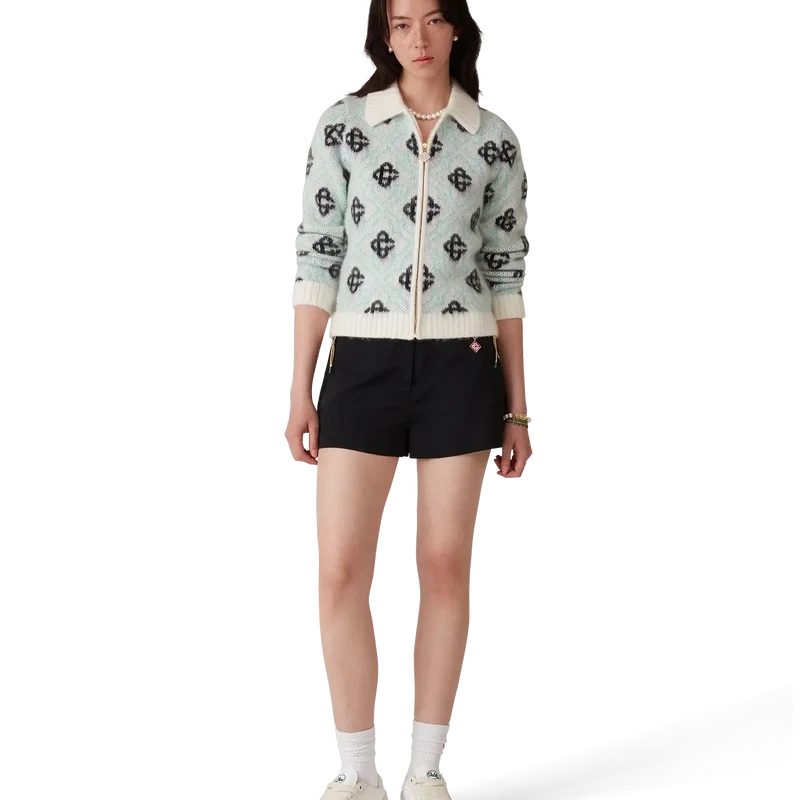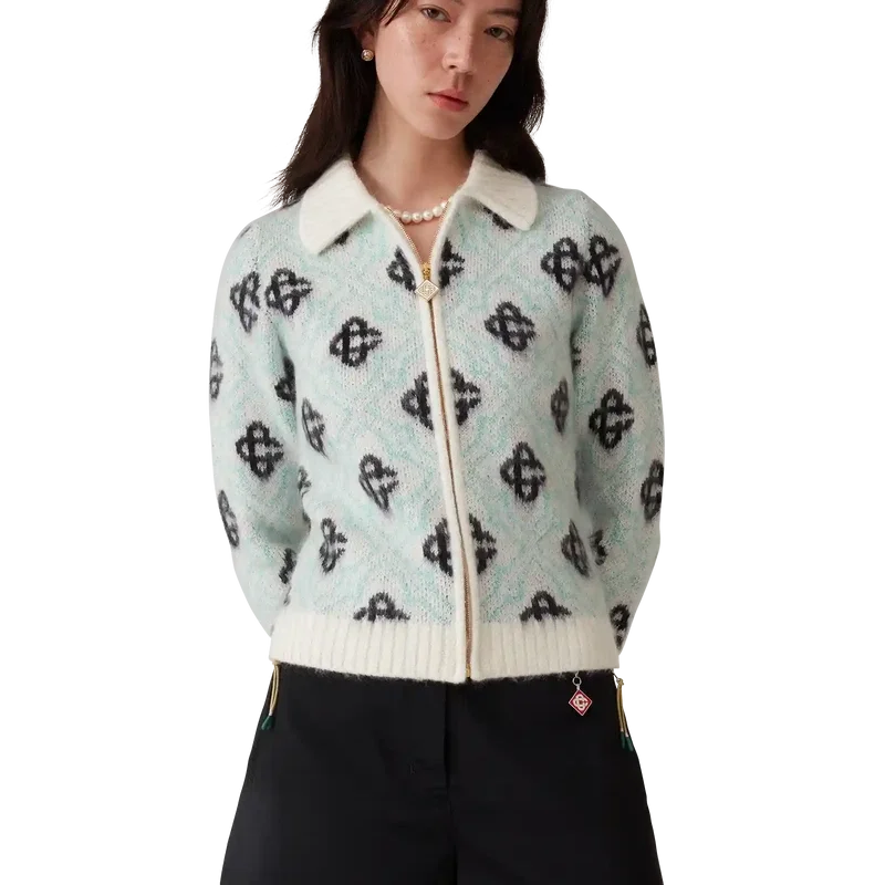 Mohair Monogram Zip Jumper er en langermet genser med husets karakteristiske sammenflettede CC-monogram vevd inn i stoffet. Fullført med glidelås, en glidelåstapp med det karakteristiske Diamond Monogram-logoen, samt ribbestrikket krage, mansjetter og nederkant.