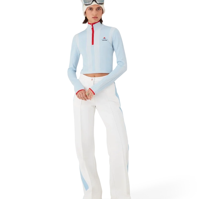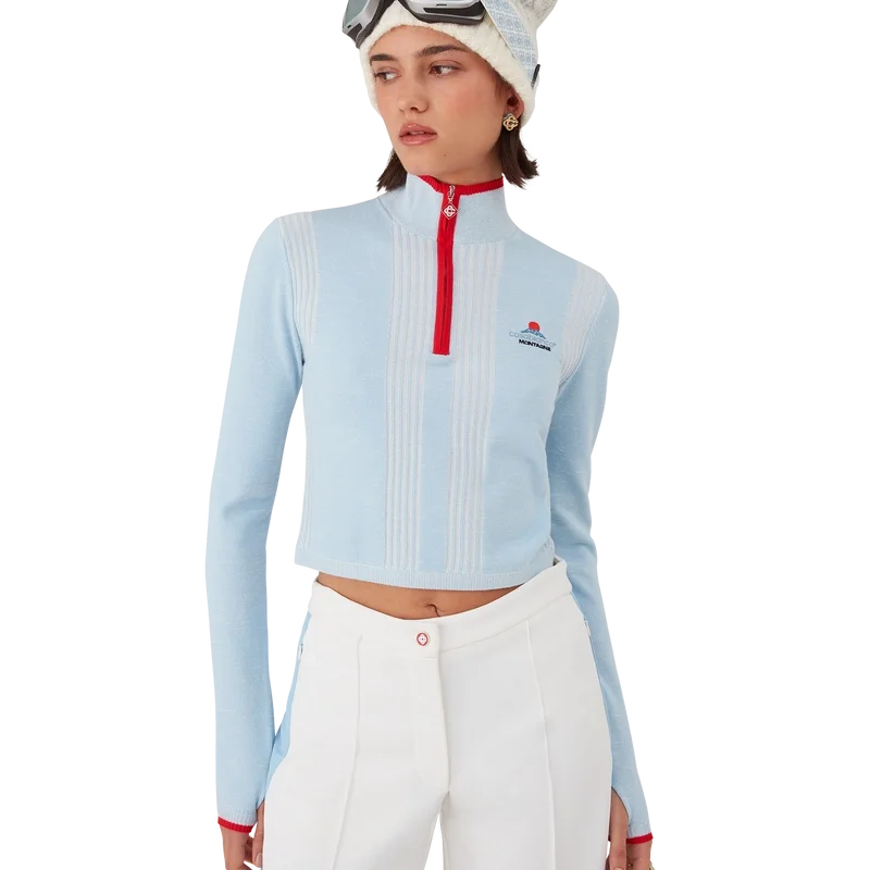 Ski Merino Base Layer Crop Top er et raffinert Apras-Sport-design laget av merinoullstoff i blått, inspirert av den dype skumringen som senker seg over Japans fjellrike landskap. Designet henter inspirasjon fra den rolige skjønnheten i kveldslyset som kaster blå skygger over snødekte daler, og blander sport og fritidseleganse.