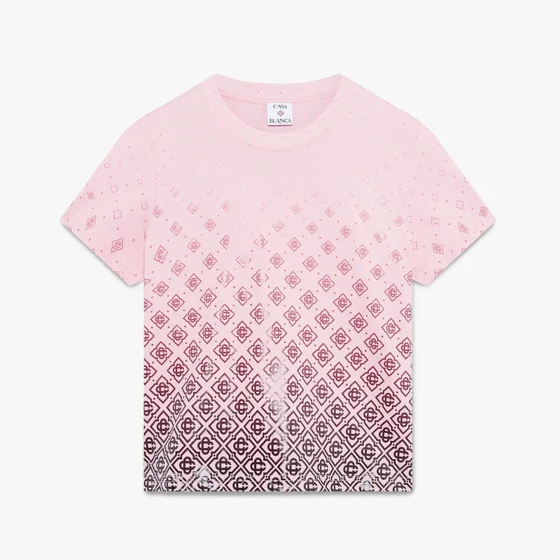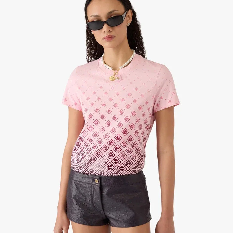 Den rosa gradient-monogram-T-skjorten med korte ermer har et raffinert design med sesongens gradient-motiv som gjenspeiler de rike fargene fra aubergine sammen med husets signaturmonogram. Fullført med en klassisk rund hals og en avslappet silhuett.