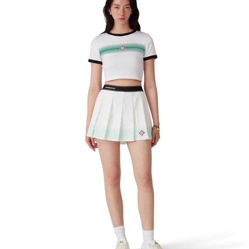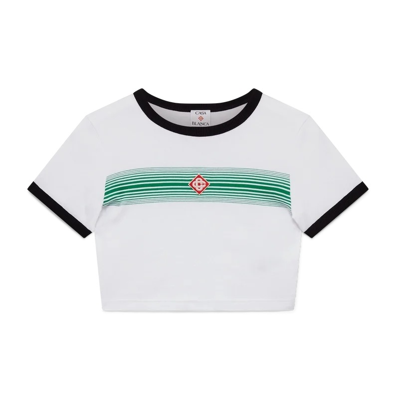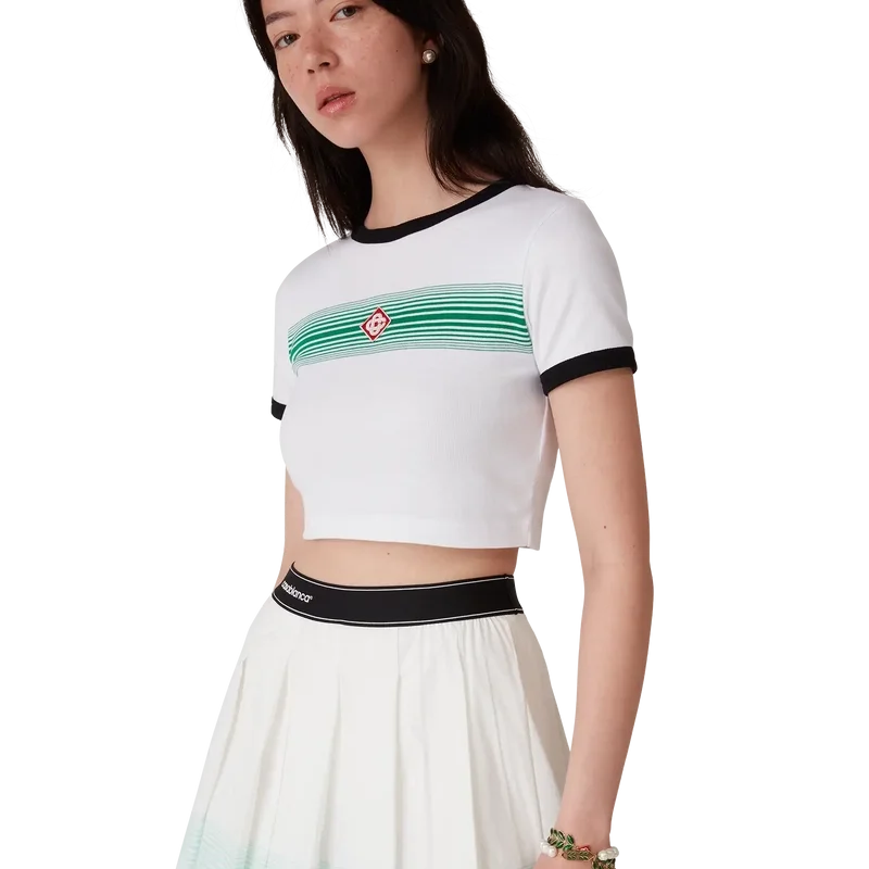 Gradient Stripe Ringer T-skjorte er en tettsittende modell med husets diamantlogo som applikasjon. Laget av bomullsstoff og ferdig med en klassisk rund hals, samt kontrastfarget ribbestrikket krage og mansjetter.