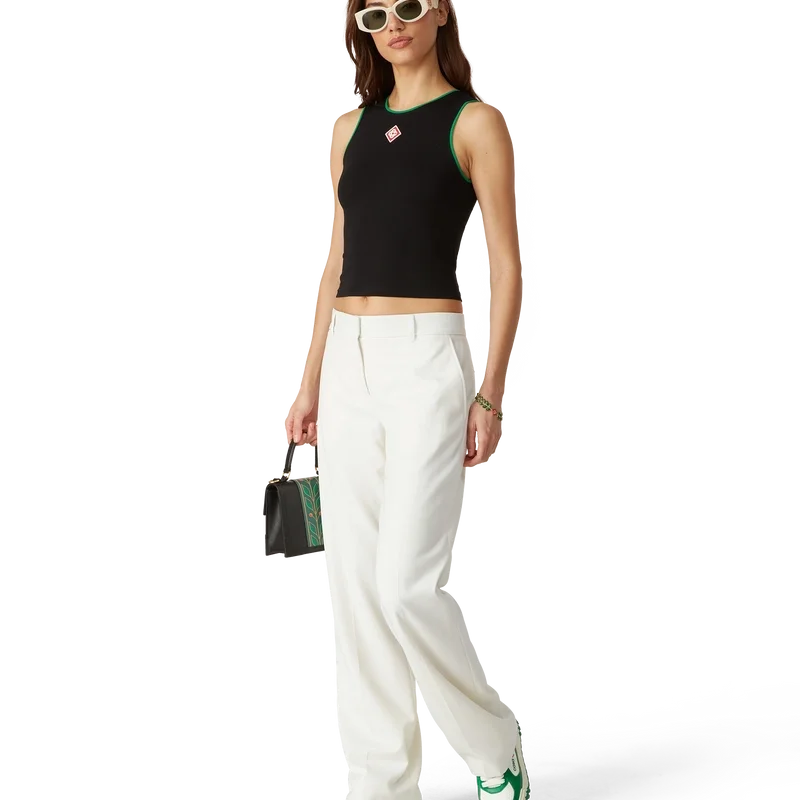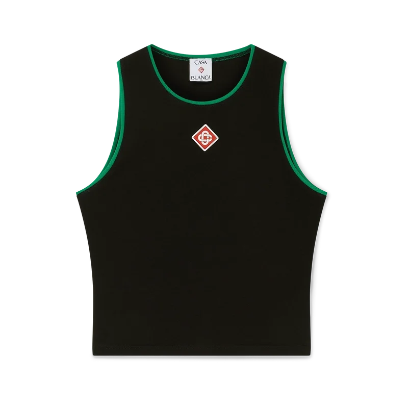 Diamond Logo Tank Top er en kort, ermeløs topp laget av bomullsstoff. Den er utstyrt med husets karakteristiske diamantlogo, grønne kantdetaljer og en klassisk rund hals. Designet for å sitte over navlen.