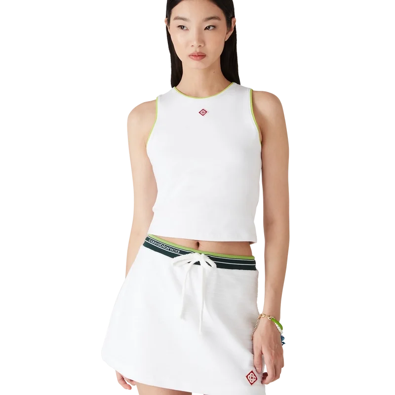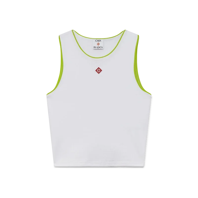 Diamond Logo Tank Top er en kort, ermeløs tank-top laget av bomullsstoff. Den er utstyrt med husets karakteristiske diamantlogo og en klassisk rund hals. Designet for å sitte over navlen.