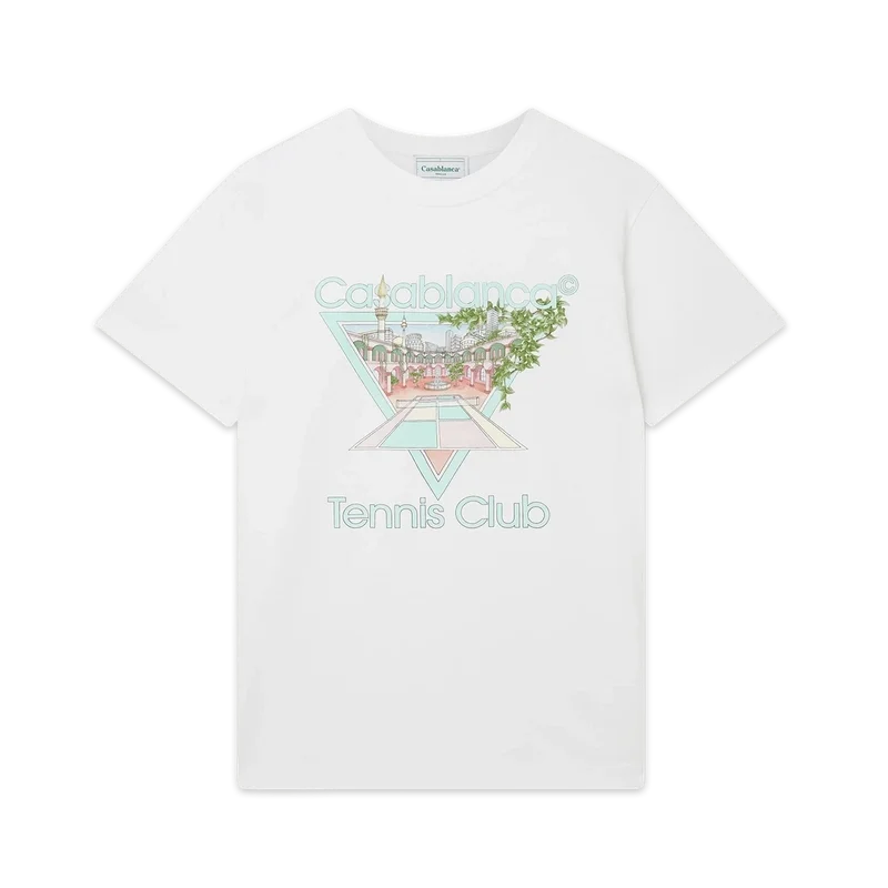 Den har klassisk rund hals, korte ermer og Casablanca Paris-merkelapp, og er designet for en avslappet passform.