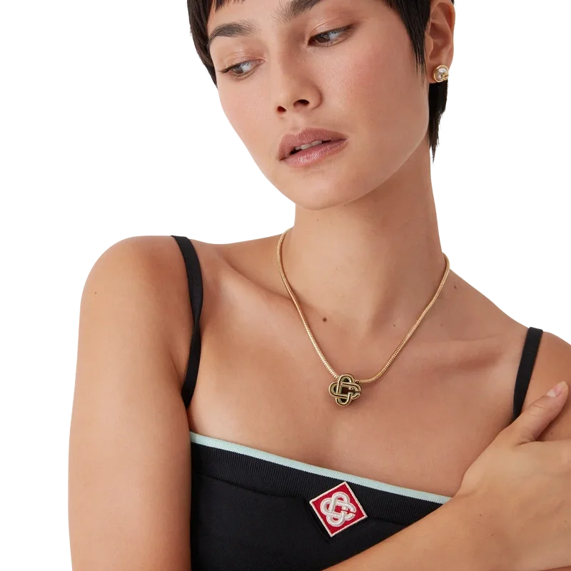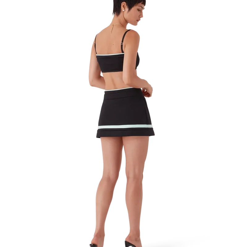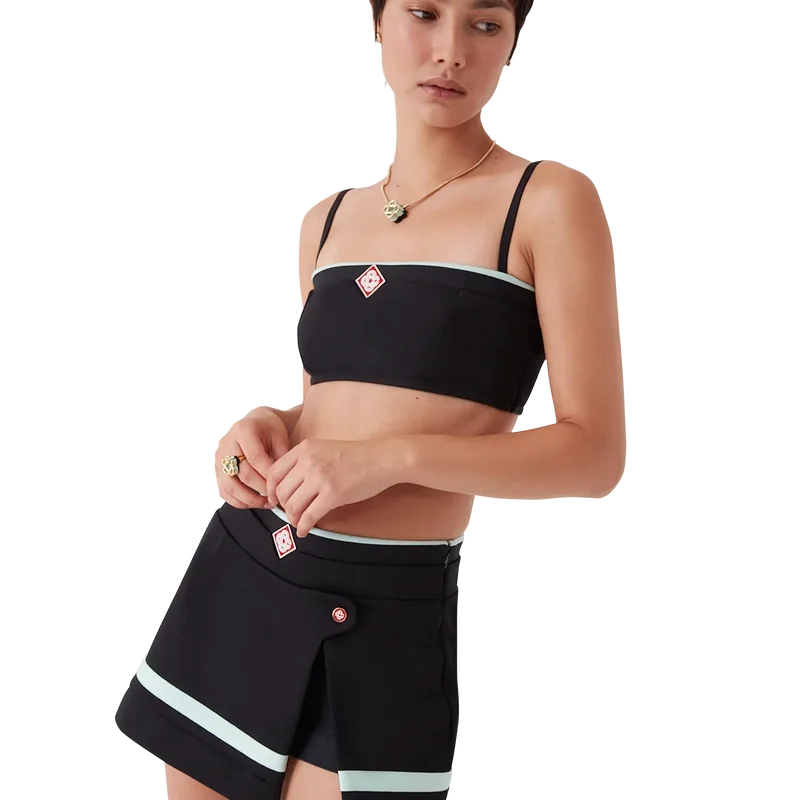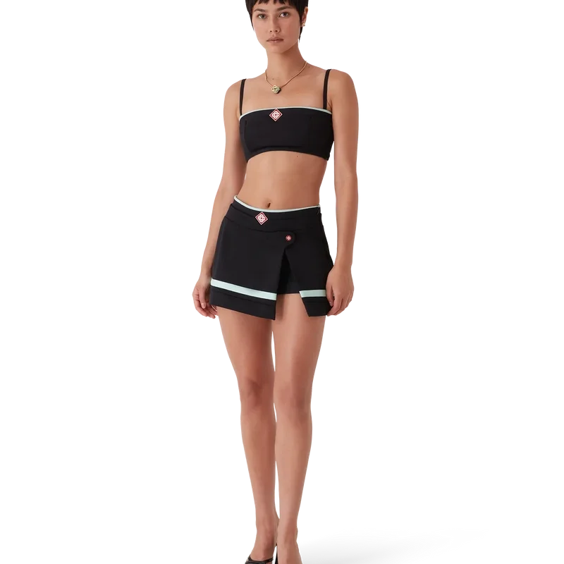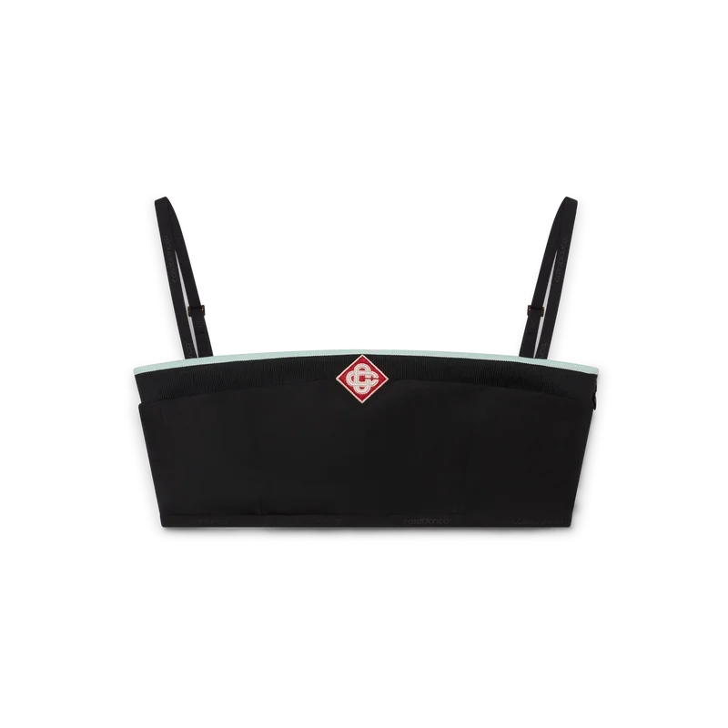Tricot-braletten er et ermeløst design inspirert av sportsklær, med husets karakteristiske Diamond Monogram i midten. Dette plagget er laget av trikotstoff, med spaghettistropper og stripete kantdetaljer.