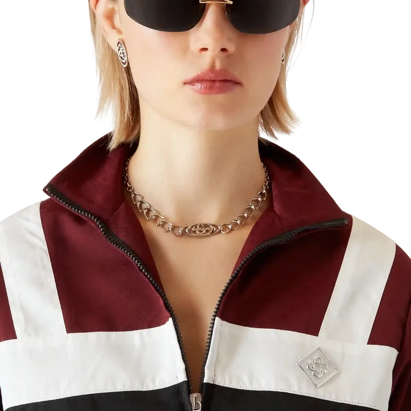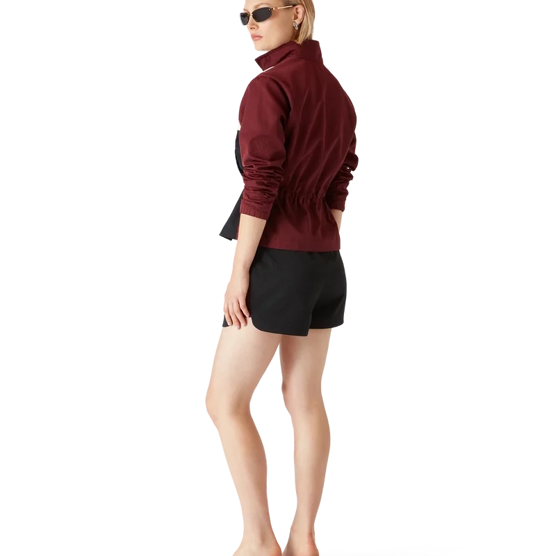 Nylon Monogram-vindjakken er en raffinert langermet modell laget av lett nylon med husets diamantlogo-lapp på brystet. Den har glidelåslukking med husets karakteristiske diamantglidelåstapp, høy hals, avslappet silhuett, innvendig elastisk snøring i livet og elastiske mansjetter.