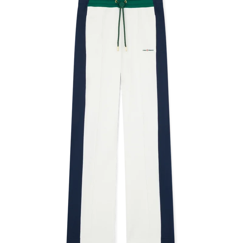 Pintuck-joggebuksen er et sportsplagg med fargeblokker og husets karakteristiske Casa Sport-logo. Den har elastisk linning med snøring med monogram og sidelommer.