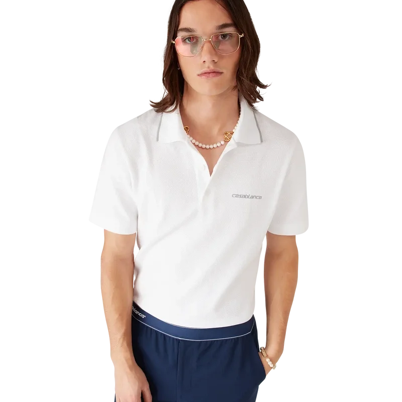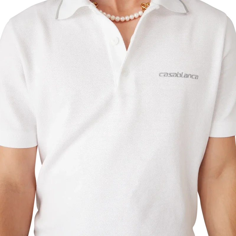 Embossed Laurel Pique-skjorte er en kortærmet, raffinert pique-skjorte laget av strukturert pikéstoff med husets karakteristiske laurbærmotiv. Fullført med krage, knappeliste med tre knapper, Corozo-knapper med sammenflettet CC-logo og ribbede mansjetter.