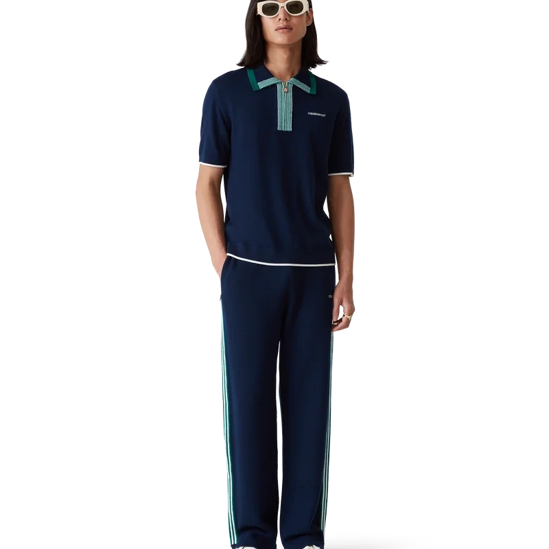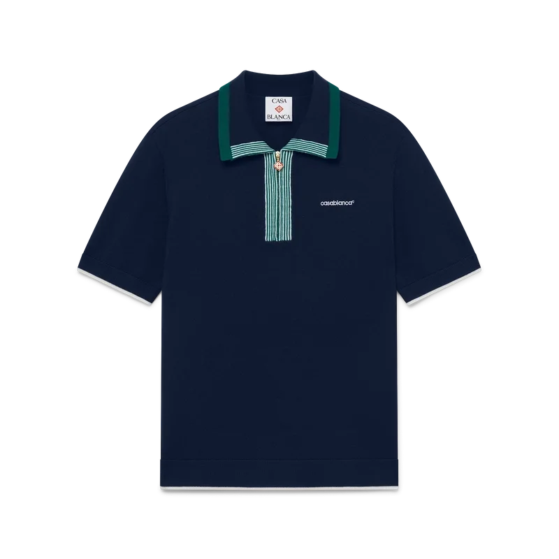 Den strikkede tennis-pique-skjorten har et klassisk design og er laget av merinoull. Den har kontrastfargede ribbede kanter på mansjetter, nederkant, krage og knappeliste, glidelås foran, ribbkrage og Casablanca-logo.