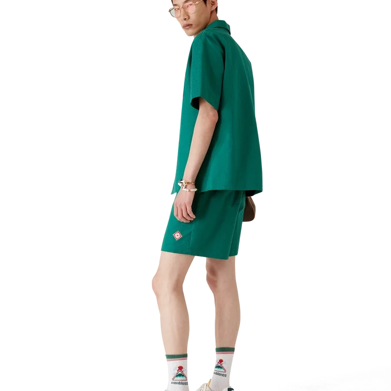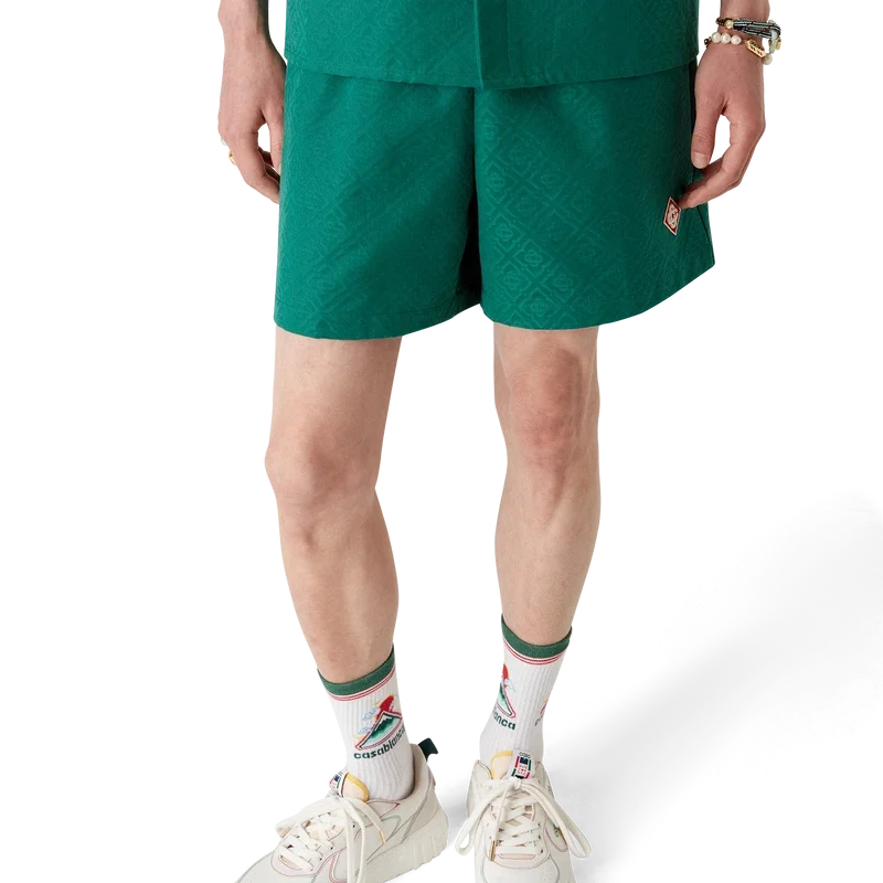 Cotton Monogram Jacquard Shorts er et klassisk design laget av et Monogram-jacquardstoff i bomull. Utstyrt med elastisk linning, snøring med gullspisser, baklomme og sidelommer i sømmen.