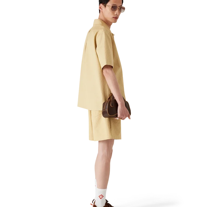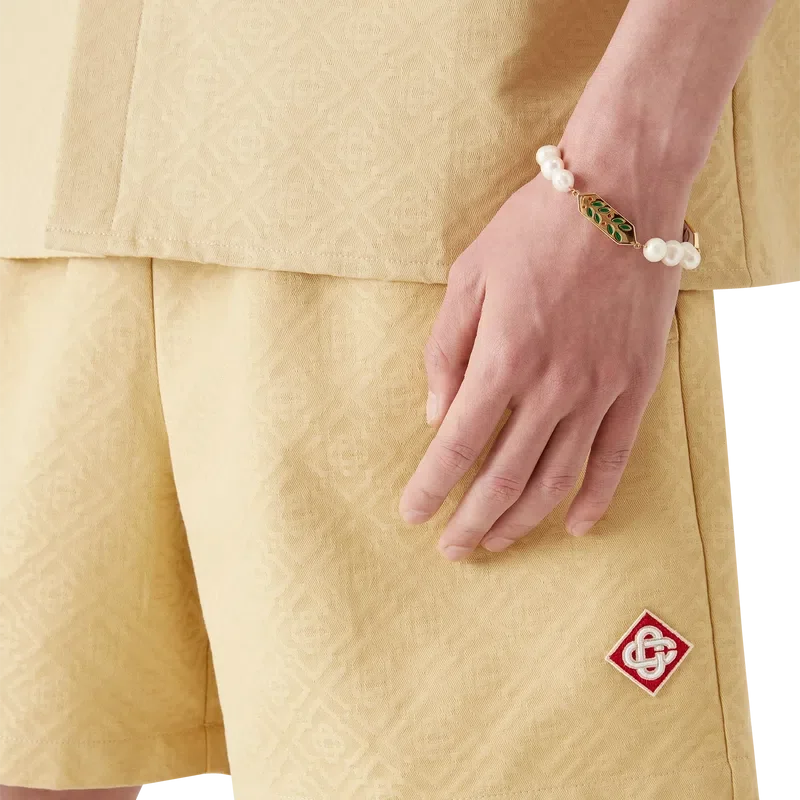 Jacquard-shortsene med monogram har et klassisk design og er laget av et jacquardstoff i bomull med monogram. De har elastisk linning, snøring med gullspisser, en baklomme og sidelommer i sømmen.
