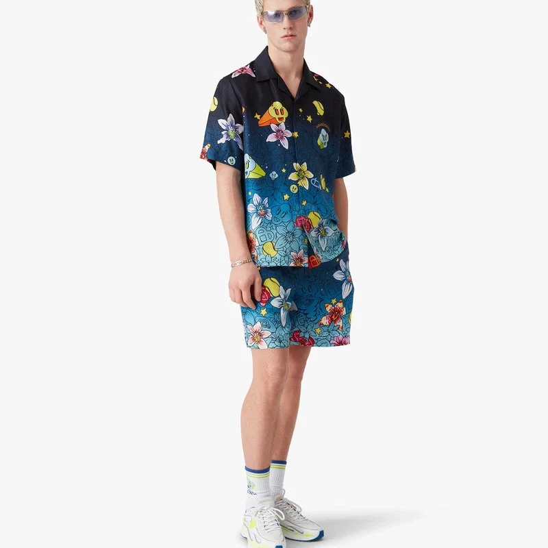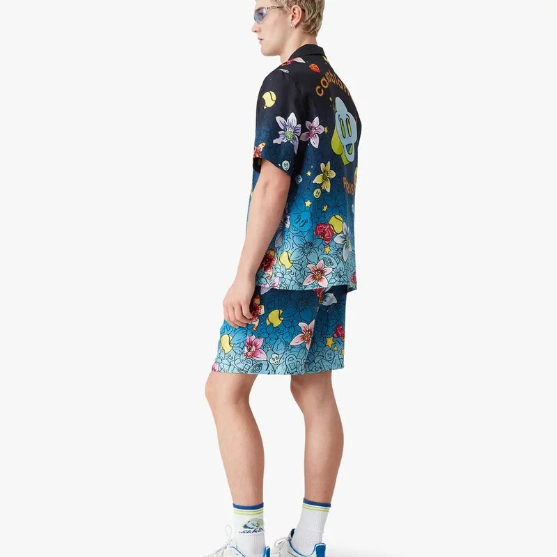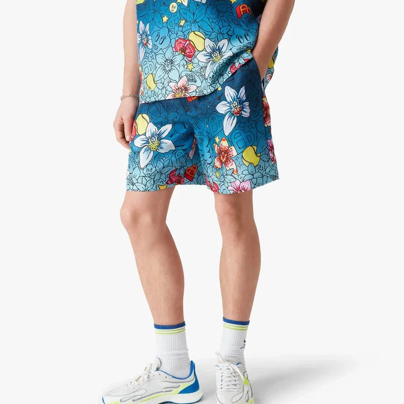 Collage D’icones Graphiques silke-shorts har et raffinert design med kunstverk som representerer ikonografien og designelementene for den nye sesongen, inkludert tolkninger av logoen, CC-smilet og orkideblomsten. Utstyrt med elastisk linning, snøring, fôr, sidelommer i sømmen og en påsydd baklomme.