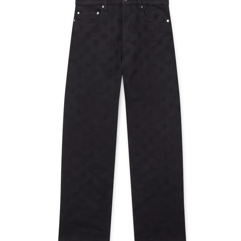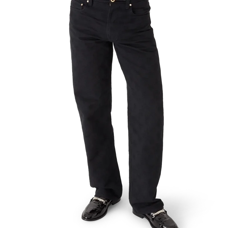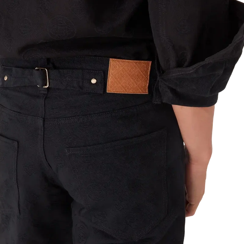 Denim Monogram Straight-Leg Jeans er et klassisk design med husets Honeydew-logo-mønster. Dette mønsteret skiller seg fra våre andre monogrammer, da det kombinerer unike former for å danne et sammenhengende mønster. Fullført med beltestropper, glidelåslukking, lommer, gullbelagte detaljer og signatur-Cc-logo-knapper i gull.