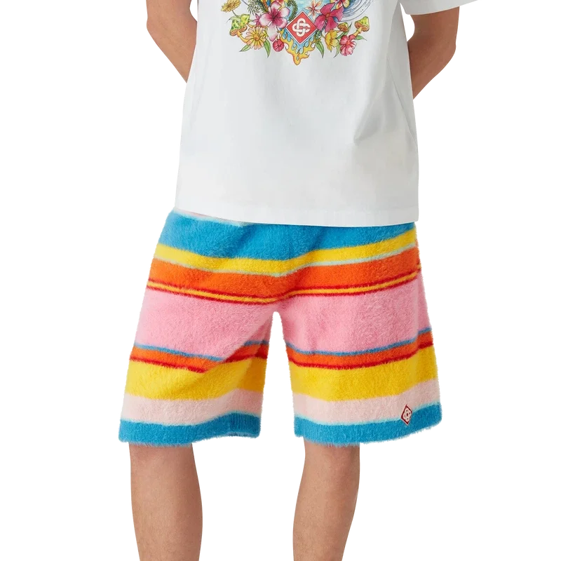 De myke, stripete oversized-Shortsen er et knelangt design laget av stripete, mykt strikket stoff. Fullført med husets signaturdiamantlogo, elastisk linning, snøring, skrå frontlommer og en påsydd baklomme.