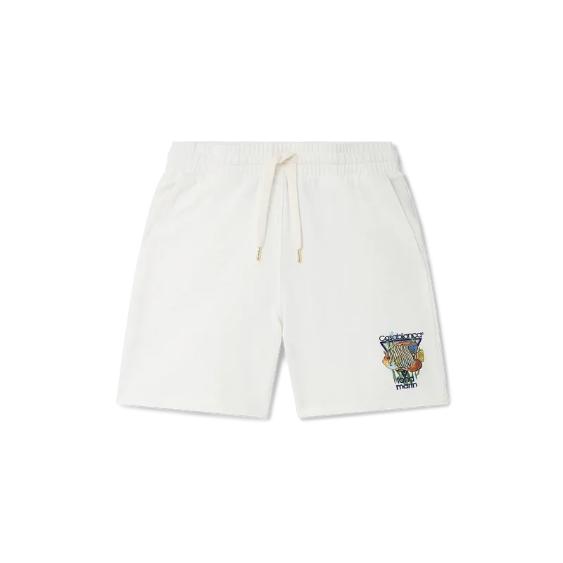 Fond Marin off-white broderte joggeshorts har et sesonginspirert kunstverk inspirert av den meksikanske kunstneren Pedro Linares. De fantastiske skapningene er en hallusinatorisk reise gjennom dyreriket. Laget av 100 % økologisk bomull, har Shortsen en lengde over kneet og er utstyrt med snøring med gullspisser og sidelommer.