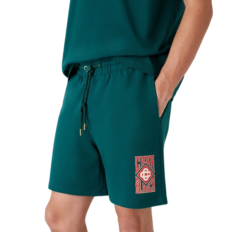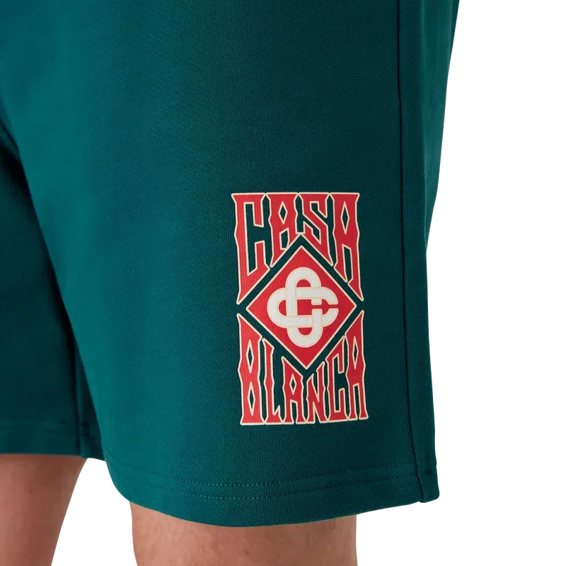 Gothic Logo Sweatshorts er et sportsklærdesign laget av økologisk bomullsstoff og har det gotiske stablede logoen med gotisk typografi inspirert av street-kulturen. Utstyrt med elastisk linning, snøring med gullspisser, skrå sidelommer og en påsydd baklomme.