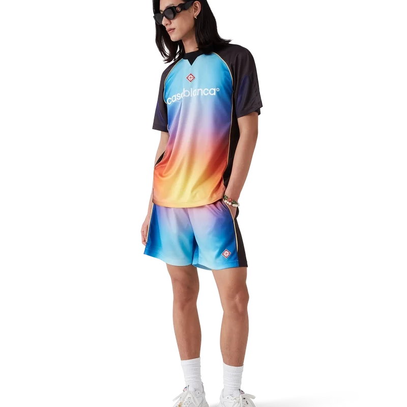 Gradient fotballshortsene er et sportsklærdesign laget av et stoff med gradienttrykk, med merkets karakteristiske Casablanca-logo på siden. Fullført med elastisk linning med snøring og sidelommer i sømmen.