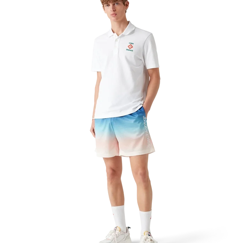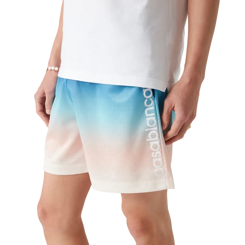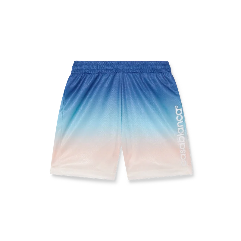 Gradient fotballshortsene er et sportsklærdesign med en fargegradient som fremhever temaer som er sentrale for vårt merke. Laget av et jacquard-monogram-polyesterstoff med husets signatur-Casablanca-logo nedover siden. Fullført med elastisk linning med snøring og sidelommer i sømmen.