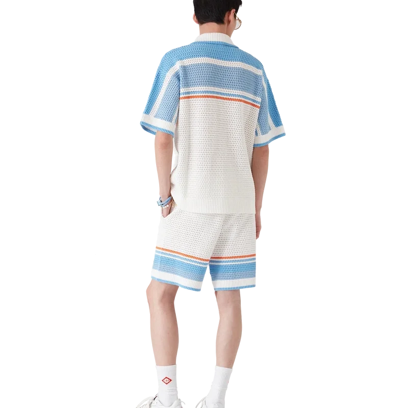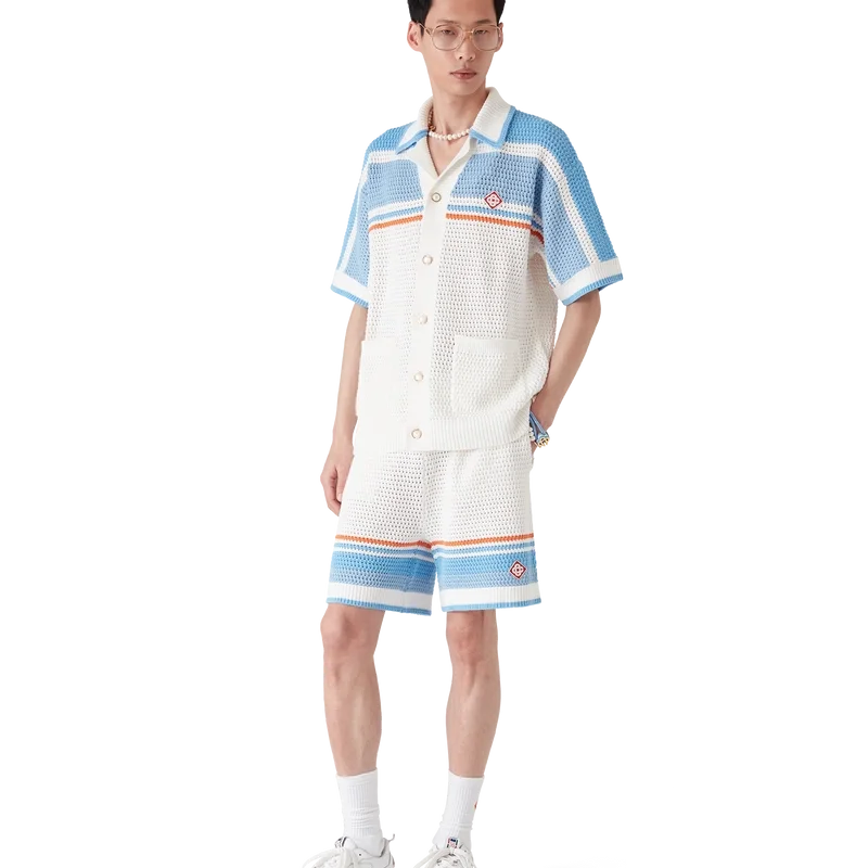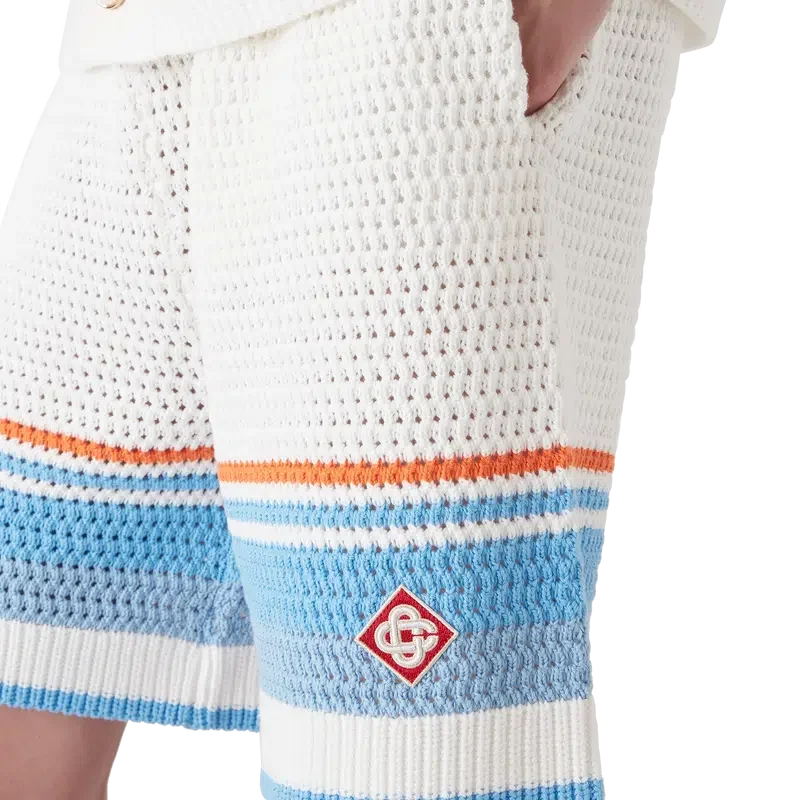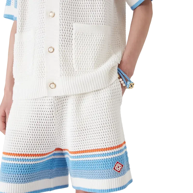 Tennis-hake-shortsen har et klassisk design laget av hake-bomullsstoff i myke, naturlige farger med husets karakteristiske diamantlogo. Fullført med elastisk linning, lommer i sømmen og stripet kantdetalj.