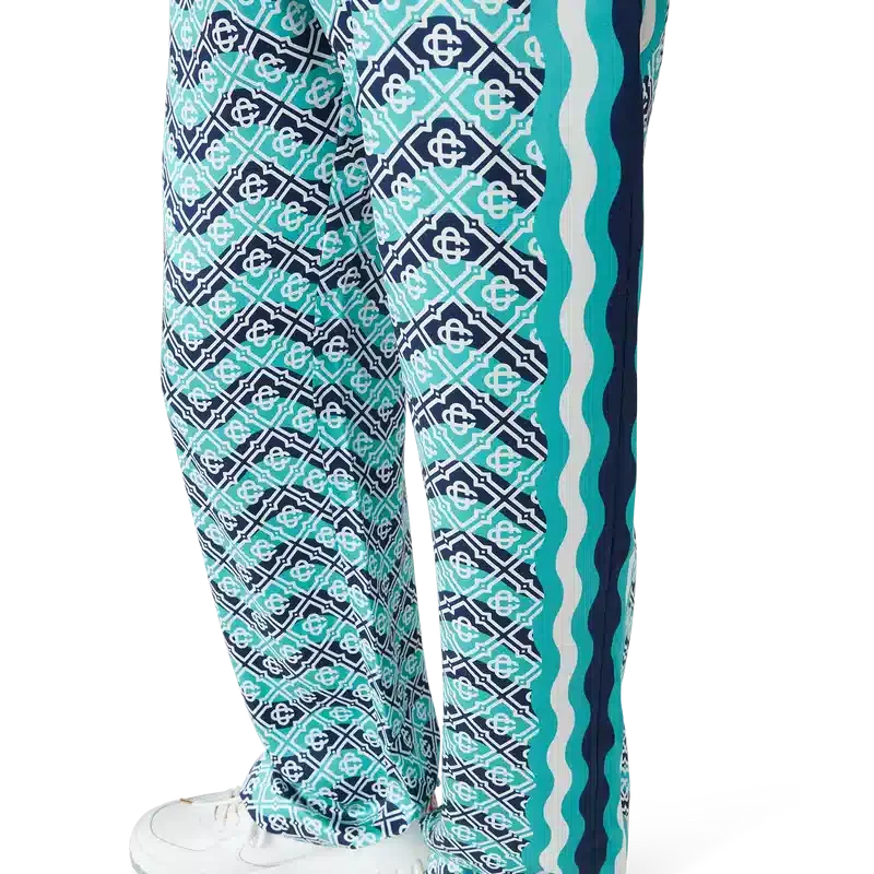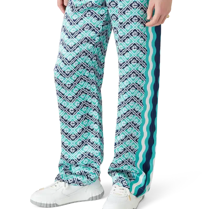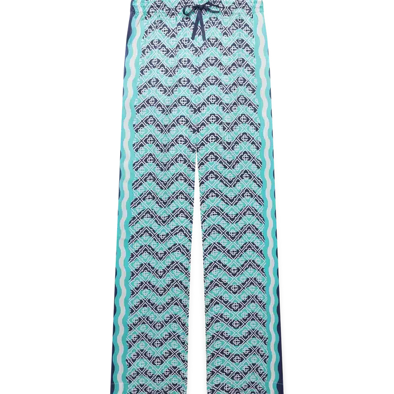 Monogram Wave-buksene har et heltrykt mønster i husets signaturmonogram, laget av silkesatin. De har elastisk linning, snøring, Memphis-bølge-inspirerte striper nedover sidene og sidelommer i sømmen.