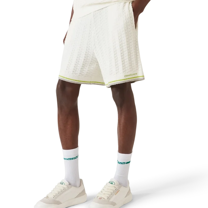 Tennis Boucle-shortsen har et strukturert design med husets Casablanca-logo. Fullført med husets signatur Casablanca-logo, elastisk linning, snøring og ribbet kant med stripete detaljer.