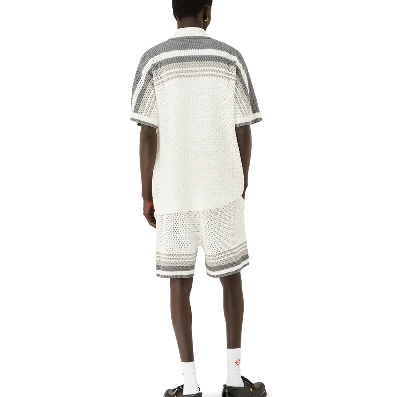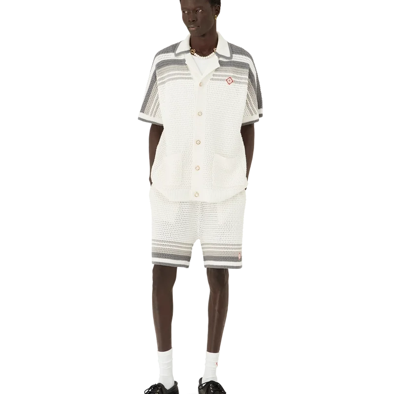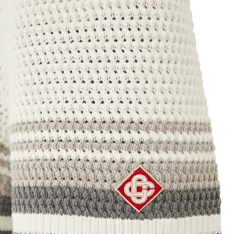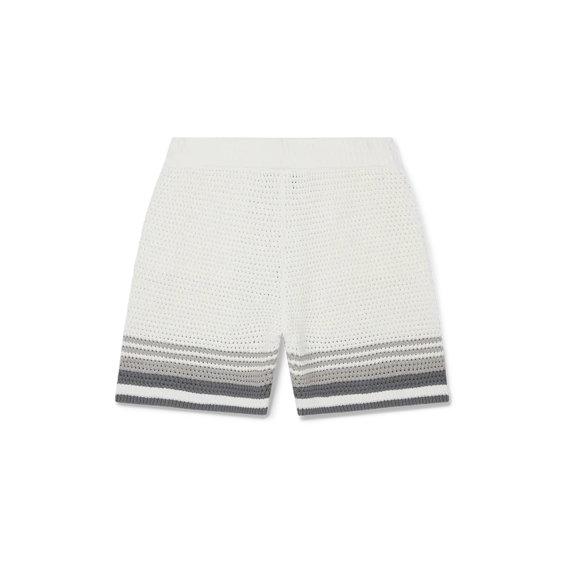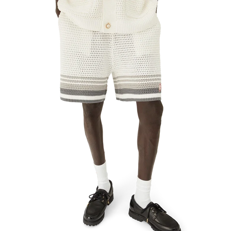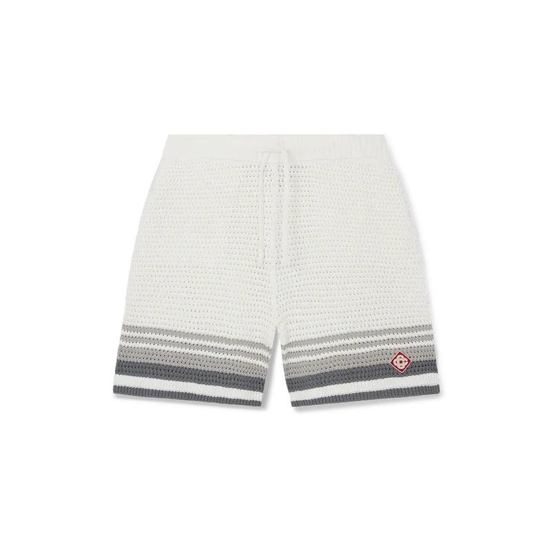 Tennis Crochet Shorts er et design med myk tekstur, laget av et strikket økologisk bomullsstoff, med husets karakteristiske diamantlogo. Avsluttet med en ribbet elastisk linning med snøring, sidelommer og kontraststriper på benene.