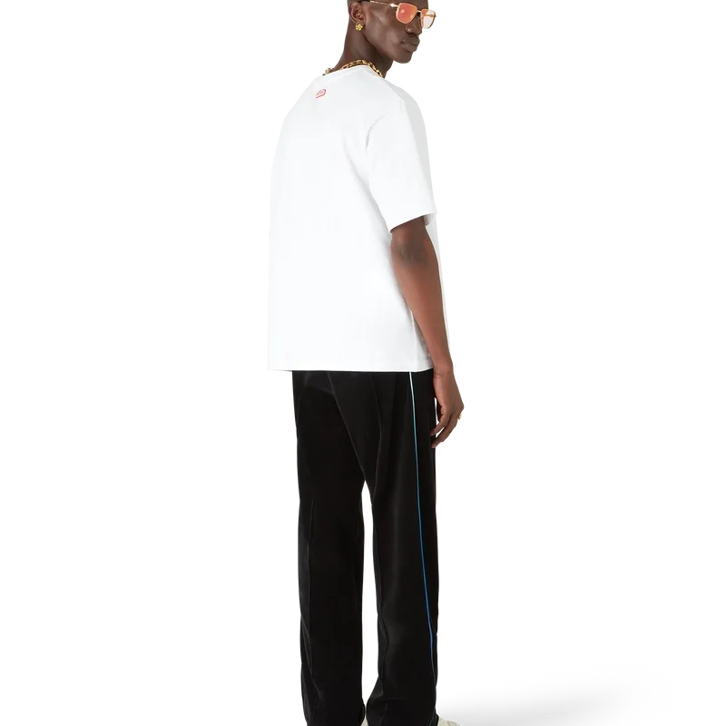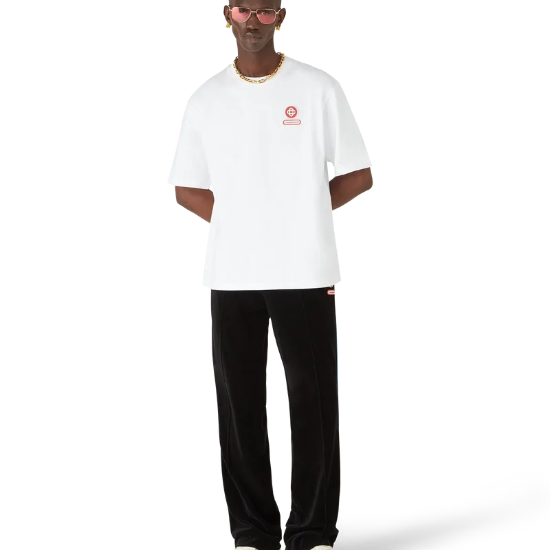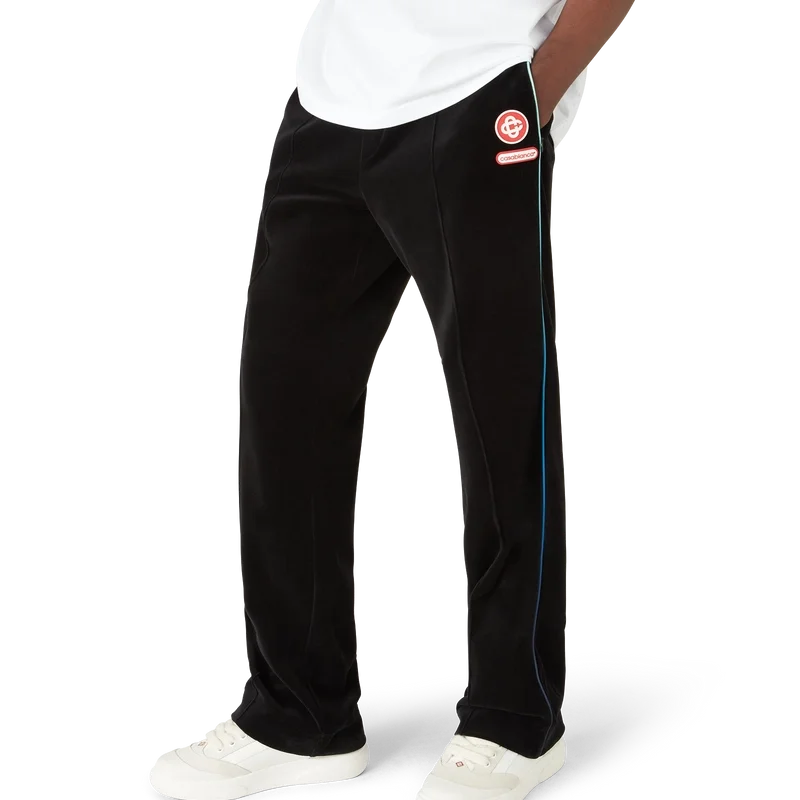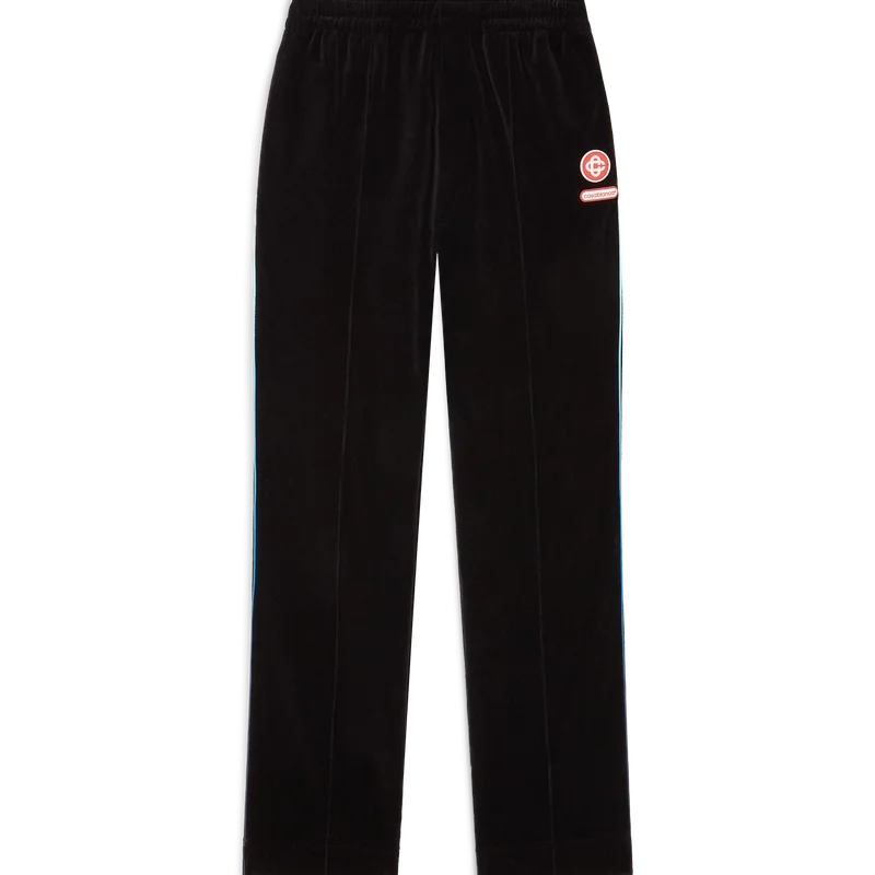 Velour-treningsbuksene med gradientpiping har et rett ben og er laget av velourstoff. De har elastisk linning, snøring, pin-tuck-sømmer foran, pipingdetaljer på sidene, sidelommer i sømmen og en baklomme med glidelås, signatur-Cc-logo og Casablanca-logo.