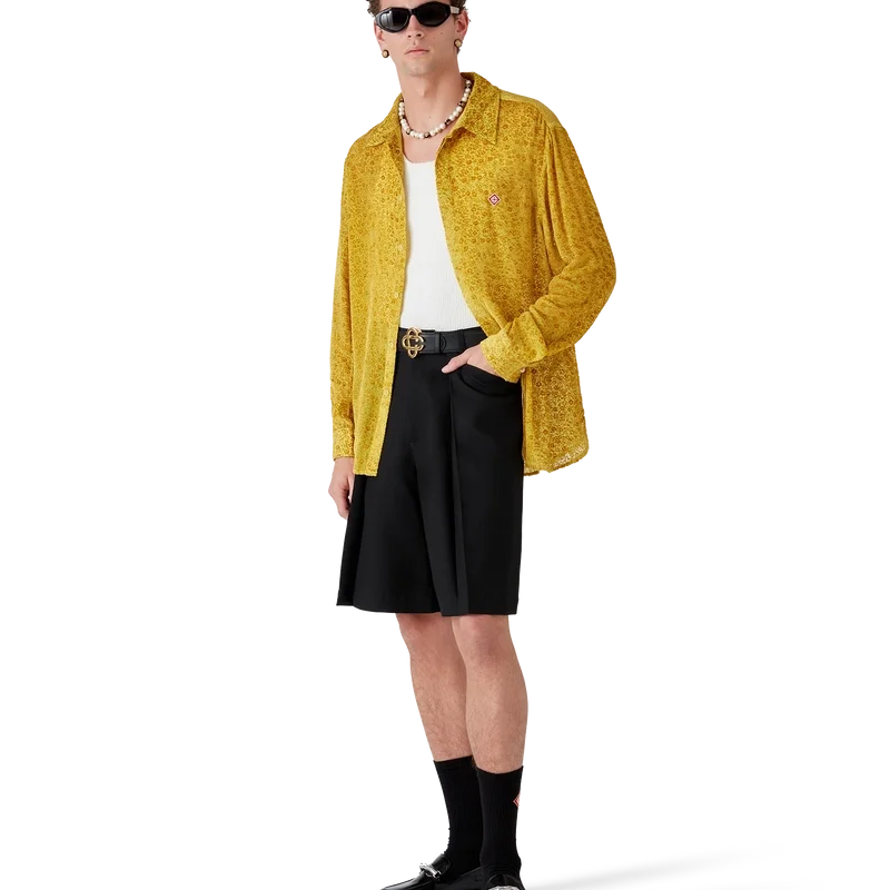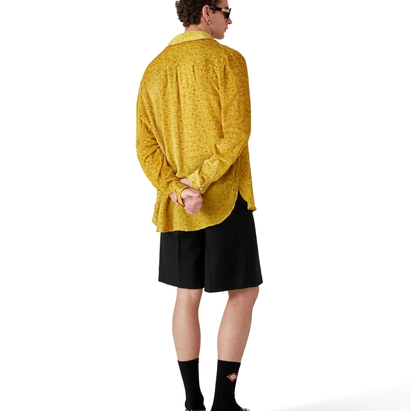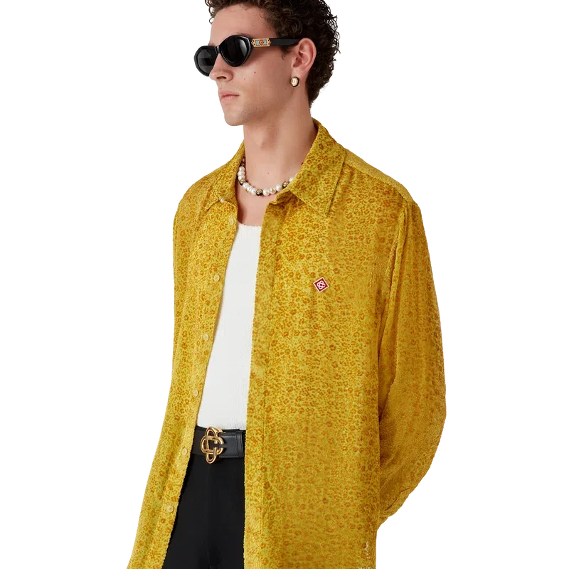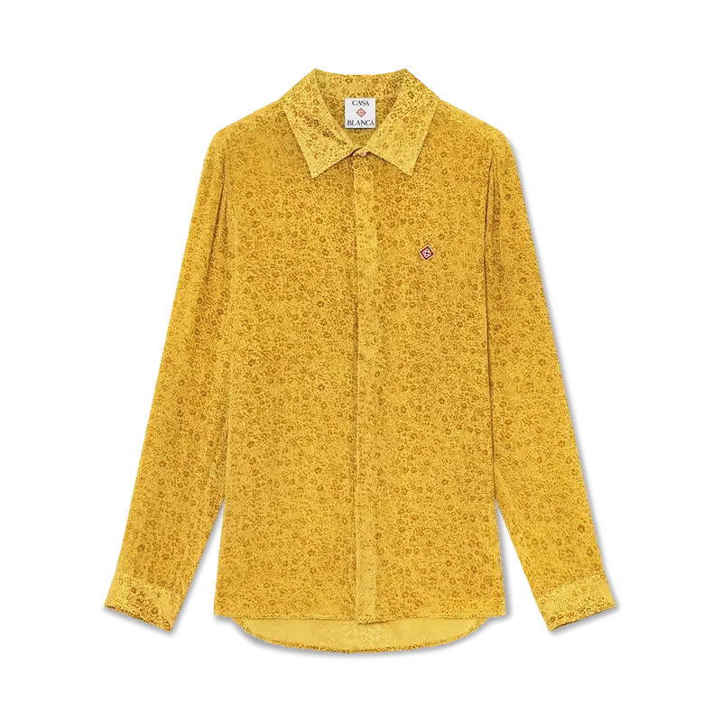 Den blomstrede Devora-silkeskjorten er en skreddersydd langermet skjorte laget av Devora-silke. Den har spisskrage, skjult knappestolpe, Corozo-knapper med sammenflettet CC-logo, et karakteristisk diamantlogo og emaljeknapper med gullkant ved krage og mansjetter.
