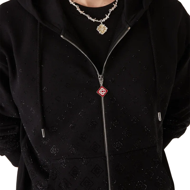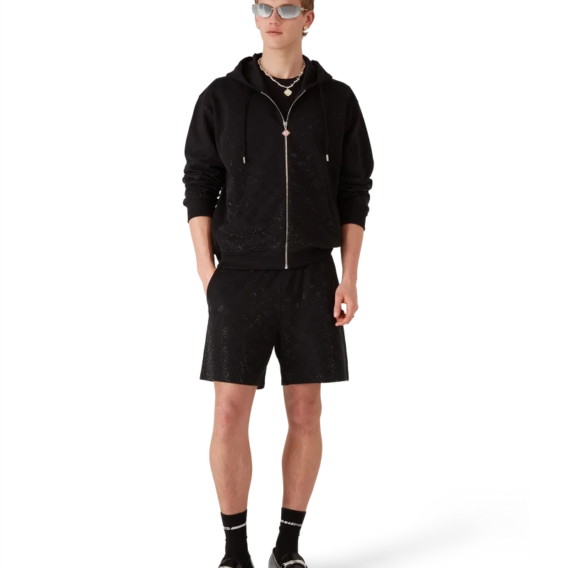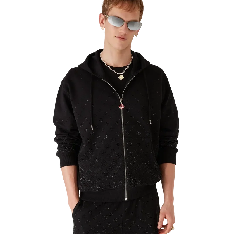 Crystal Monogram langermet genser er et raffinert, eksklusivt jersey-design med husets Degrade Monogram laget av krystaller. Fullført med hette og glidelåslukking med husets signatur Diamond Monogram på glidelåstappen, påsydde lommer og ribbede mansjetter og nederkant, som gir komfort samtidig som husets sport- og fritidsestetikk opprettholdes.