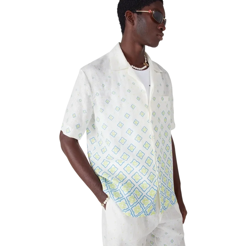 Degrade Monogram kortærmet linskjorte er et raffinert design med krage. Fullført med en krage i kubansk stil, knappelukking med sammenflettede Cc-logo-knapper i corozo og en brystlomme.<!–