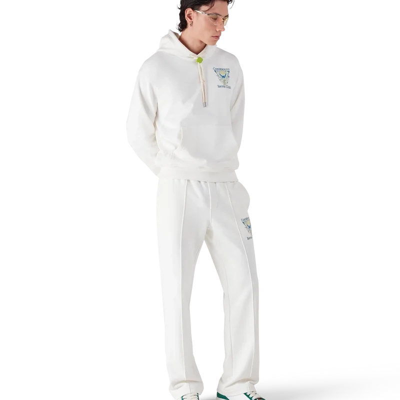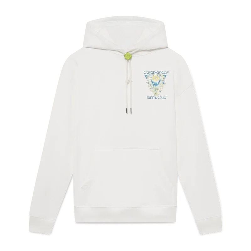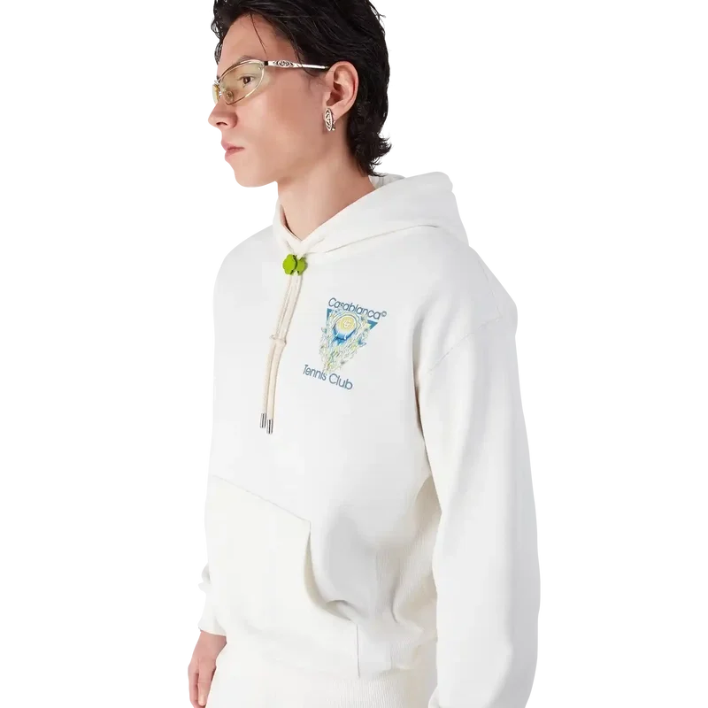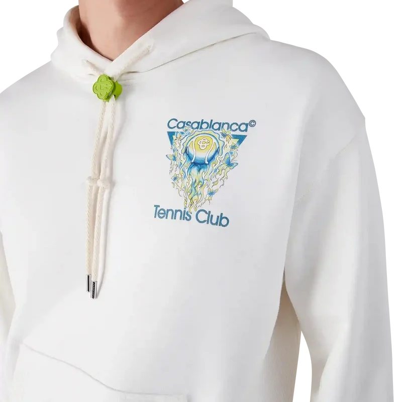 Tennis Club Icon-hettegenseren er et raffinert sportsklærdesign med motiv av husets karakteristiske tennisball-logo i luften, som gjenspeiler den grunnleggende balansen mellom kraft, hastighet og kontroll. Utstyrt med snøring, hette, ribbede mansjetter og nederkant, samt kengurulomme.