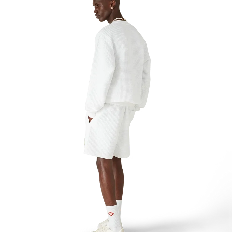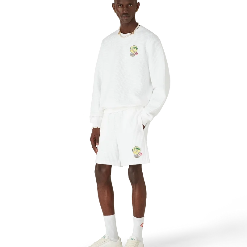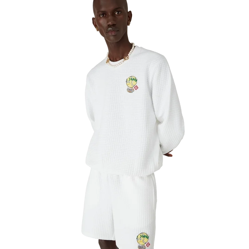 Tennis Mascot Quilted Sweatshirt er en langermet, brodert genser, laget av et quiltet stoff med rutemønster og sesongens kunstverk av den kawaii tennisballen – denne figuren er en sentral del av vårt univers. Den inneholder elementer som laurbærbladet, Atlantis-sneakeren, racketen og de kawaii øynene. Vi har valgt å bruke denne figuren som det sentrale motivet på alle herremodellene i kolleksjonen. Fullført med en klassisk rund hals.<!–