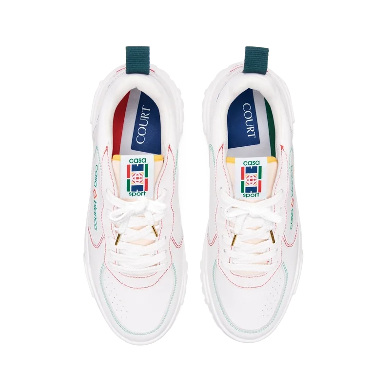 Designspråket til Court-sneakeren gjenspeiler de ikoniske silhuettene fra 90-tallet. Fargene som går igjen i sømmene er en kombinasjon av de raffinerte kodene fra tennis og klassisk arkitektur, og skaper en helhetlig fargepalett i hele skoen, med fokus på primærfarger som kontrasteres av tennis-hvitt for å skape en sportsfokusert fargehistorie. Overdel i hvitt skinn i samme fargetone Casablanca-gummilapp med diamantlogo på hælen Casablanca Sport-logo i silikon på siden Vevd Court-tungelapp Yttersåle inspirert av tennisbanen, utført i primærfarger inspirert av tennis Gullfargede snørebåndstupper Toll og avgifter Vær oppmerksom på at det kan påløpe importavgifter og skatter ved levering for kunder utenfor EU. Ta kontakt med tollkontoret i ditt land for å finne ut hva de lokale importavgiftene og skattene er før du kjøper. Du bør kanskje velge den minste størrelsen hvis du ligger mellom to størrelser.